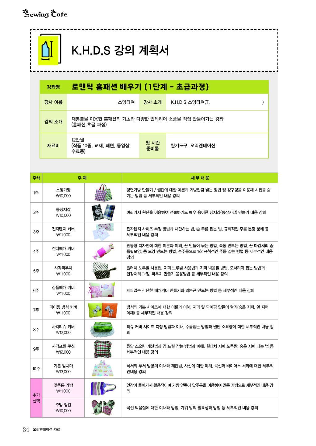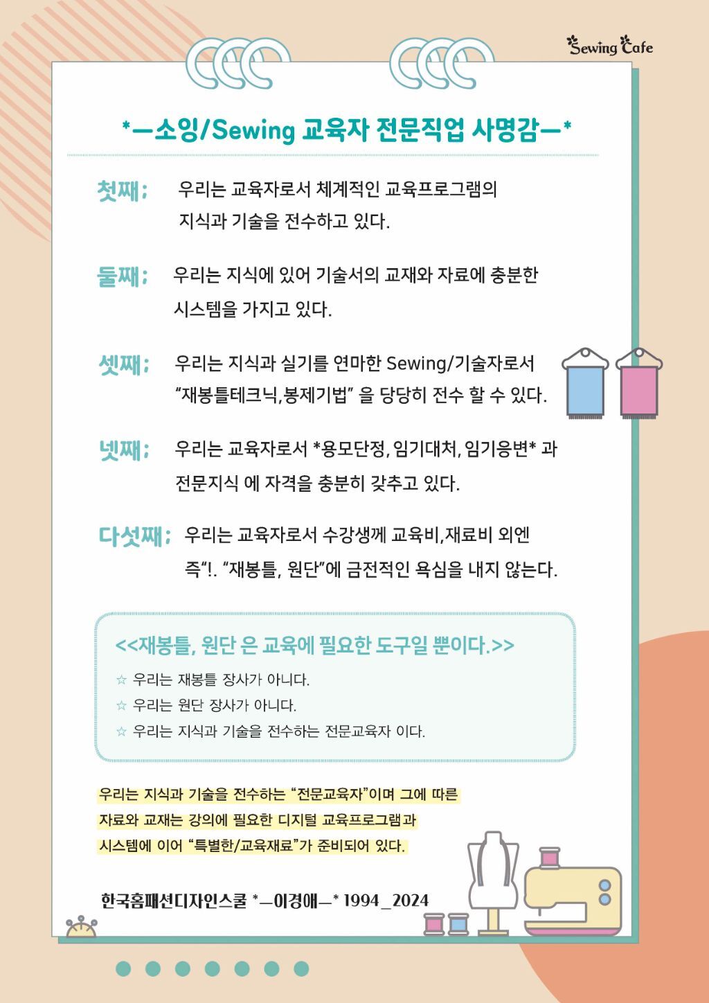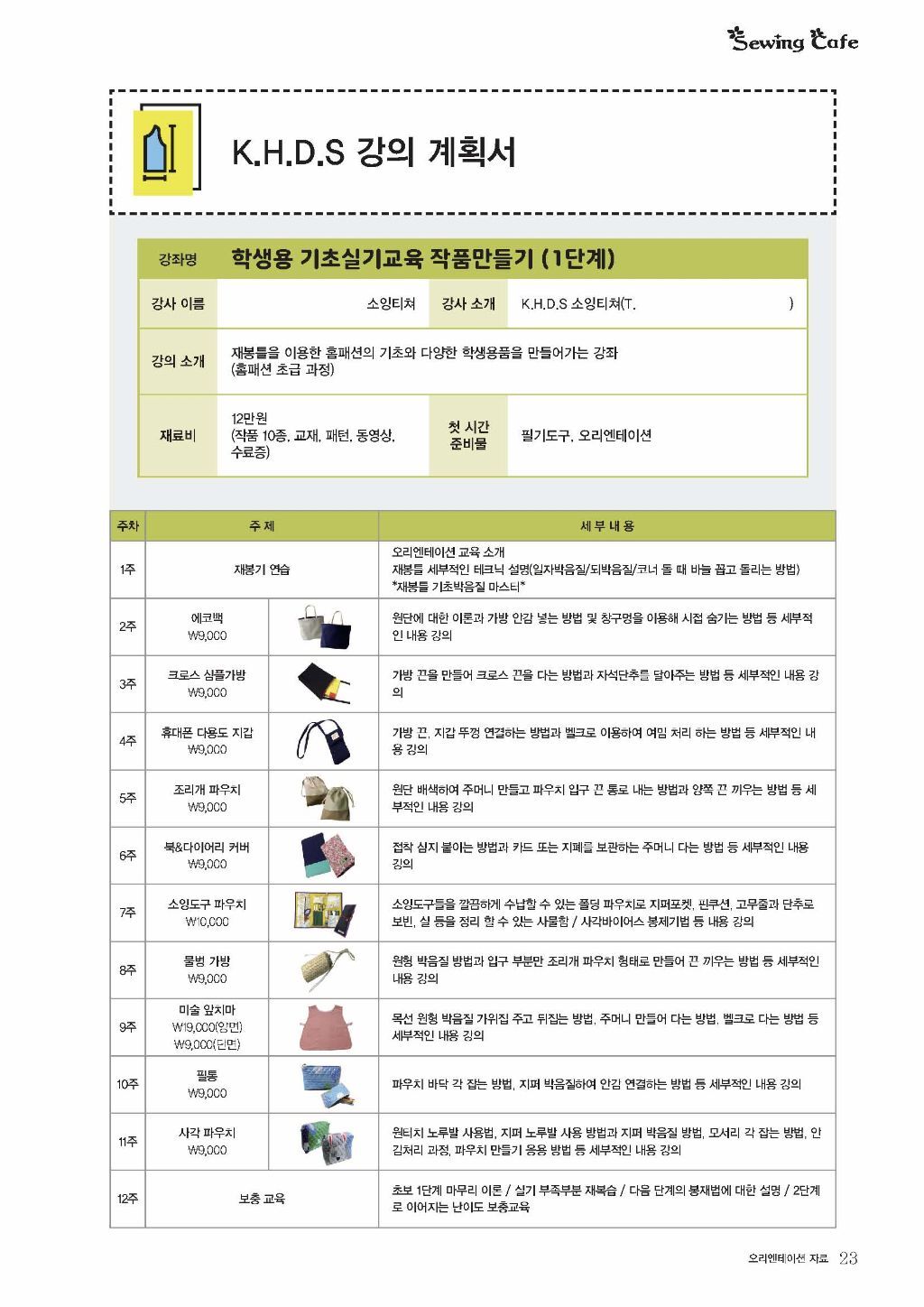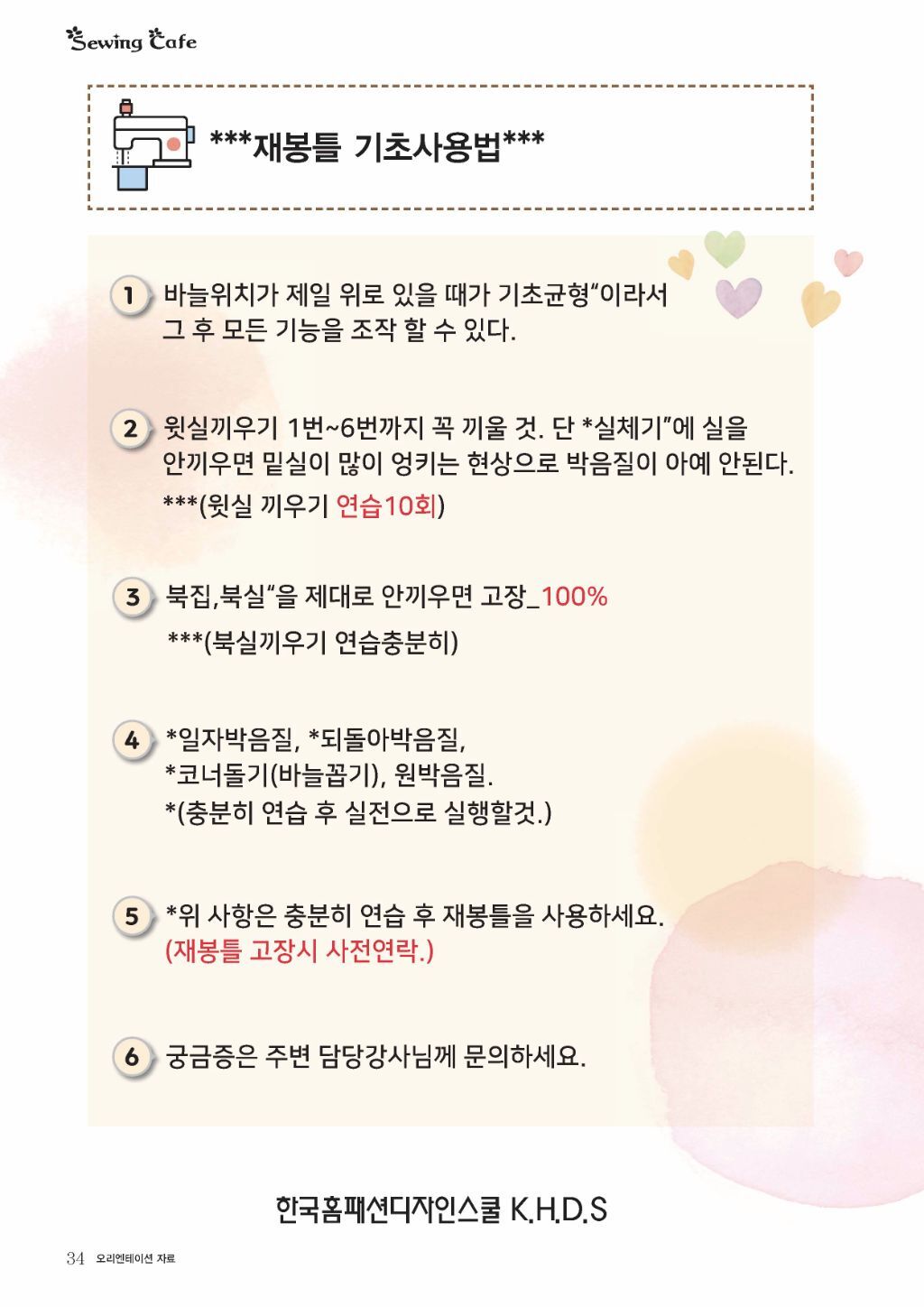 현재 소잉카페본교 진행되는 오리엔테이션교재