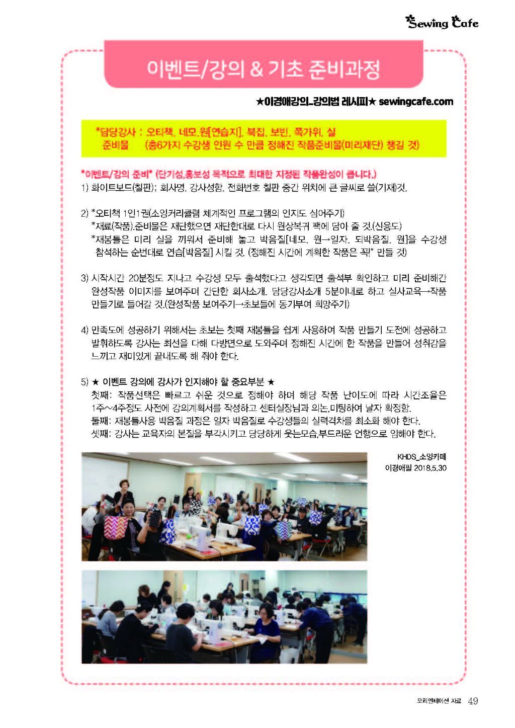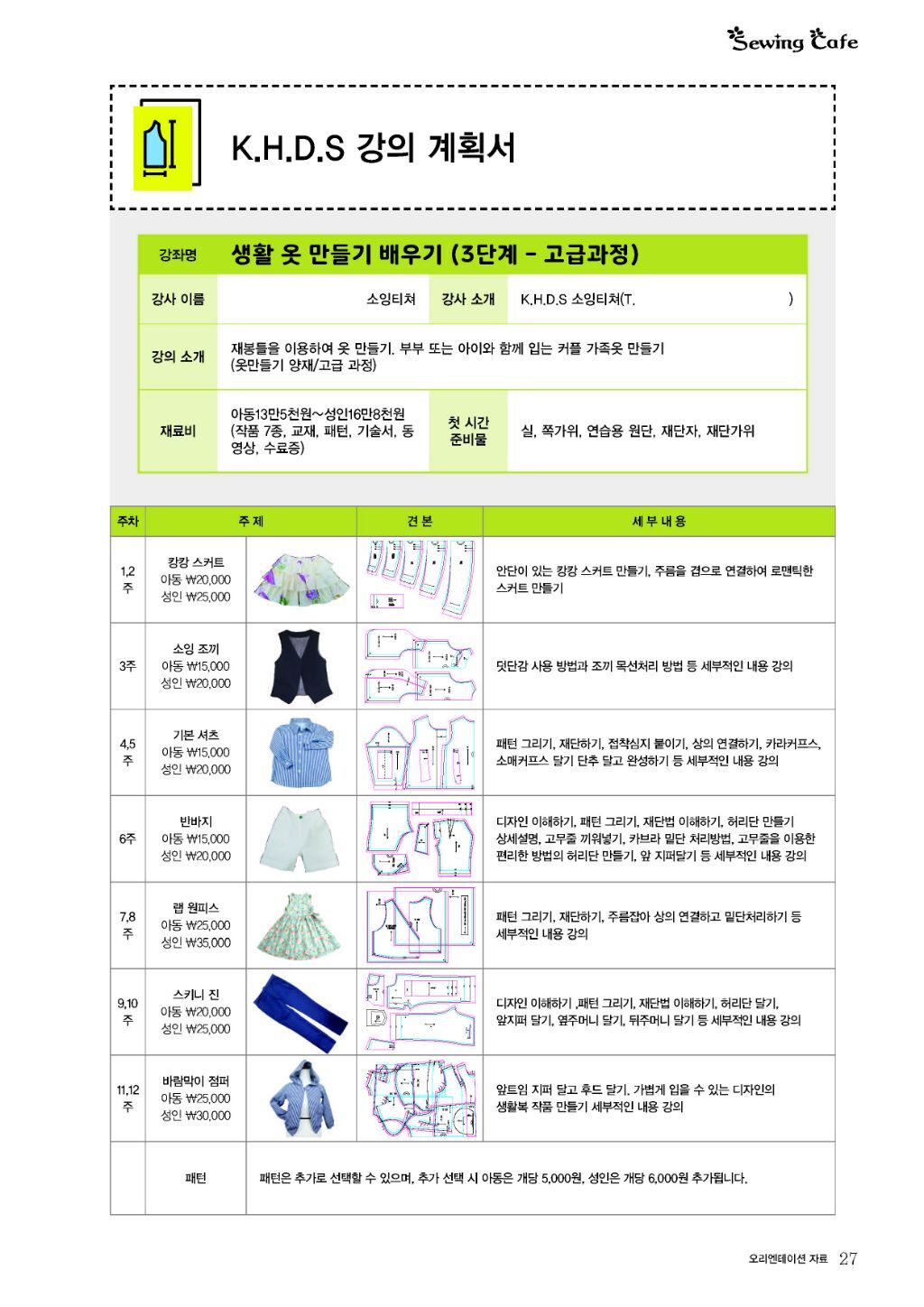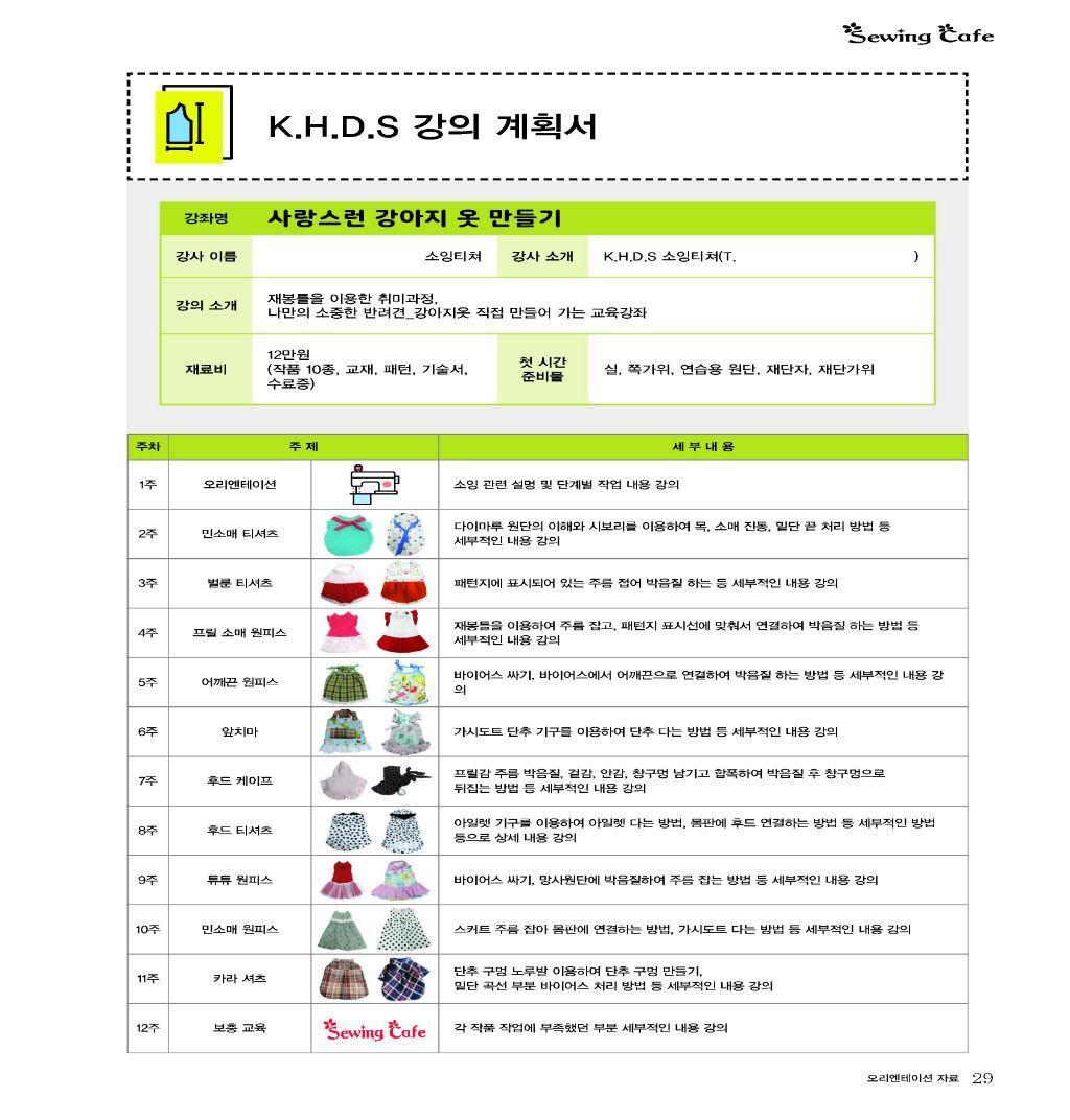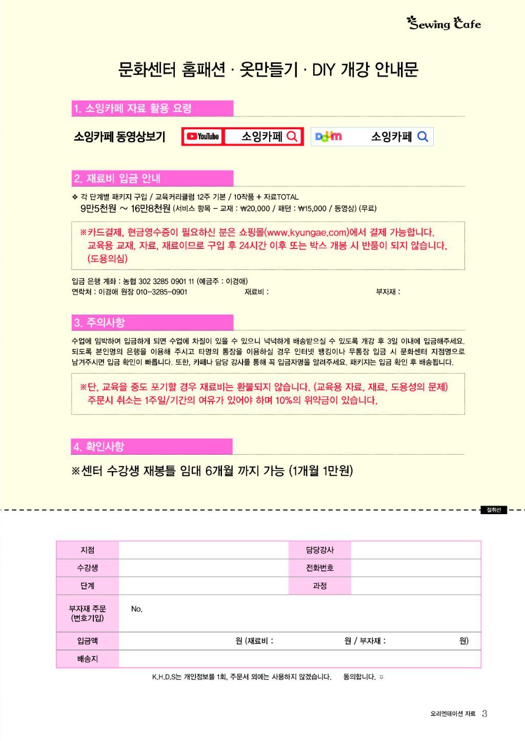 현재 소잉카페본교 진행되는 오리엔테이션교재