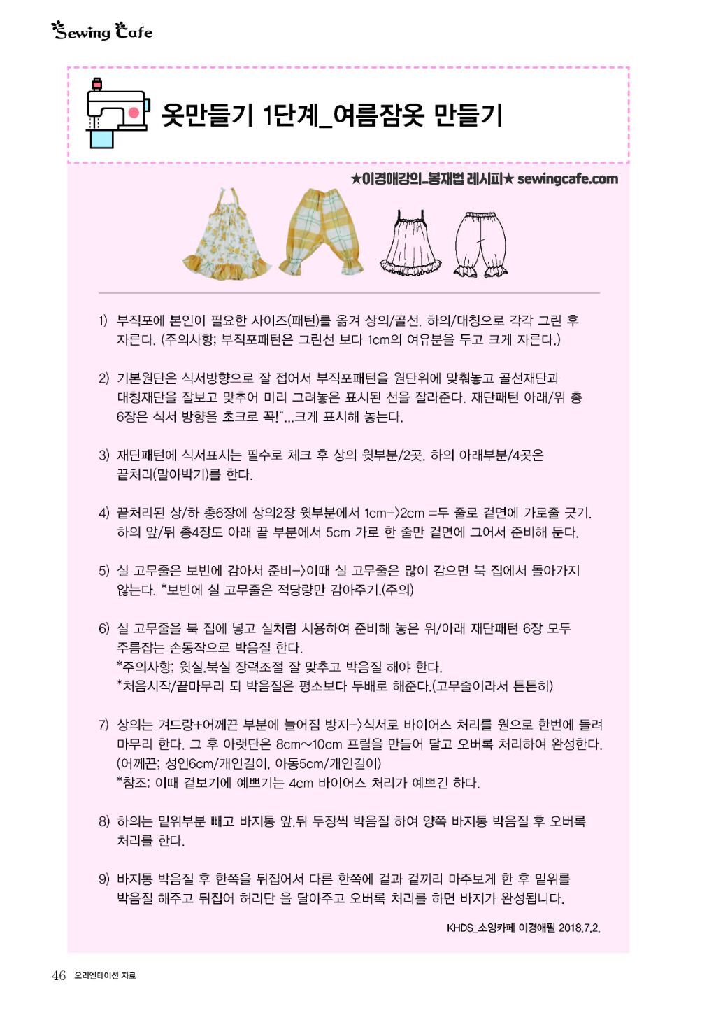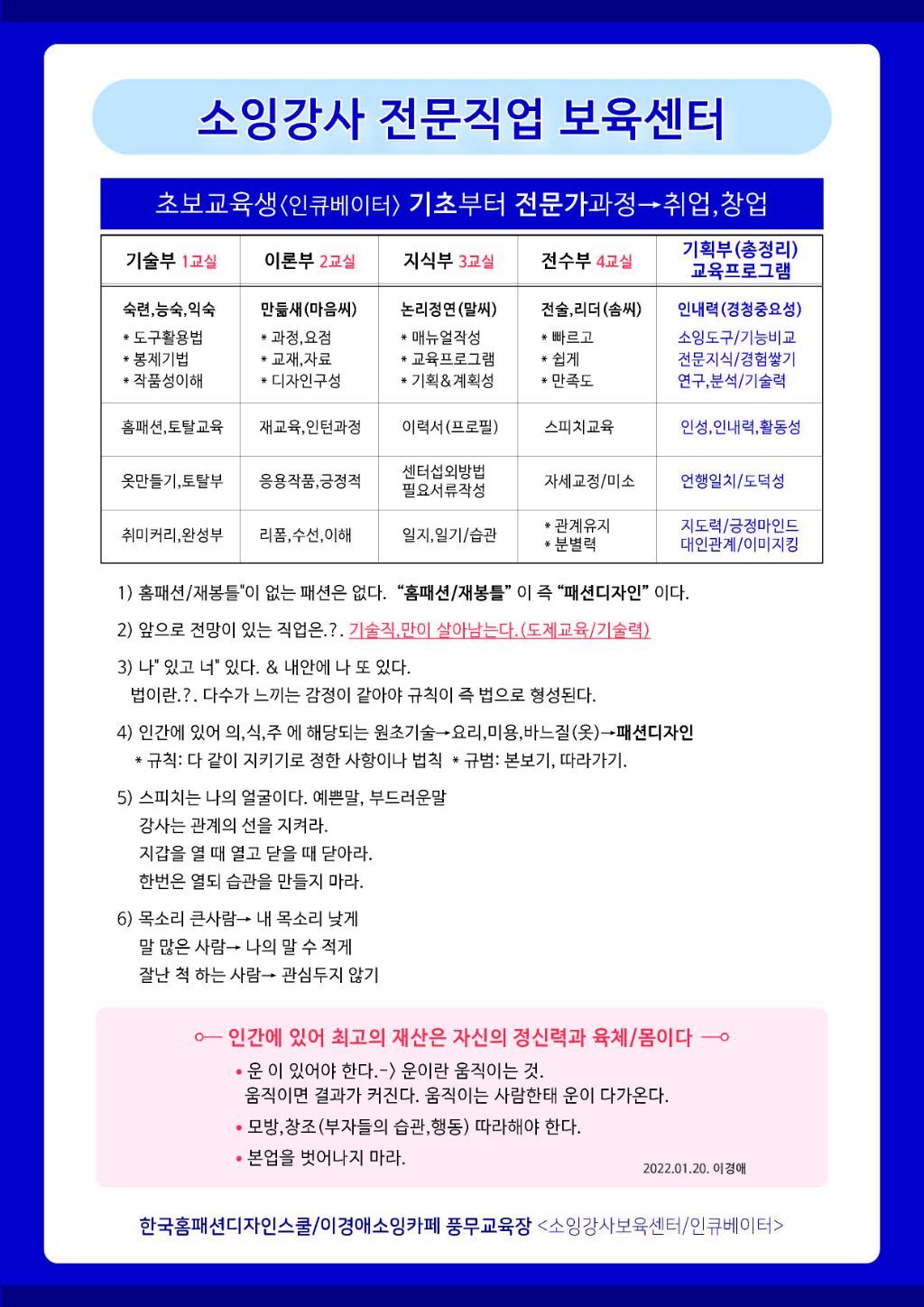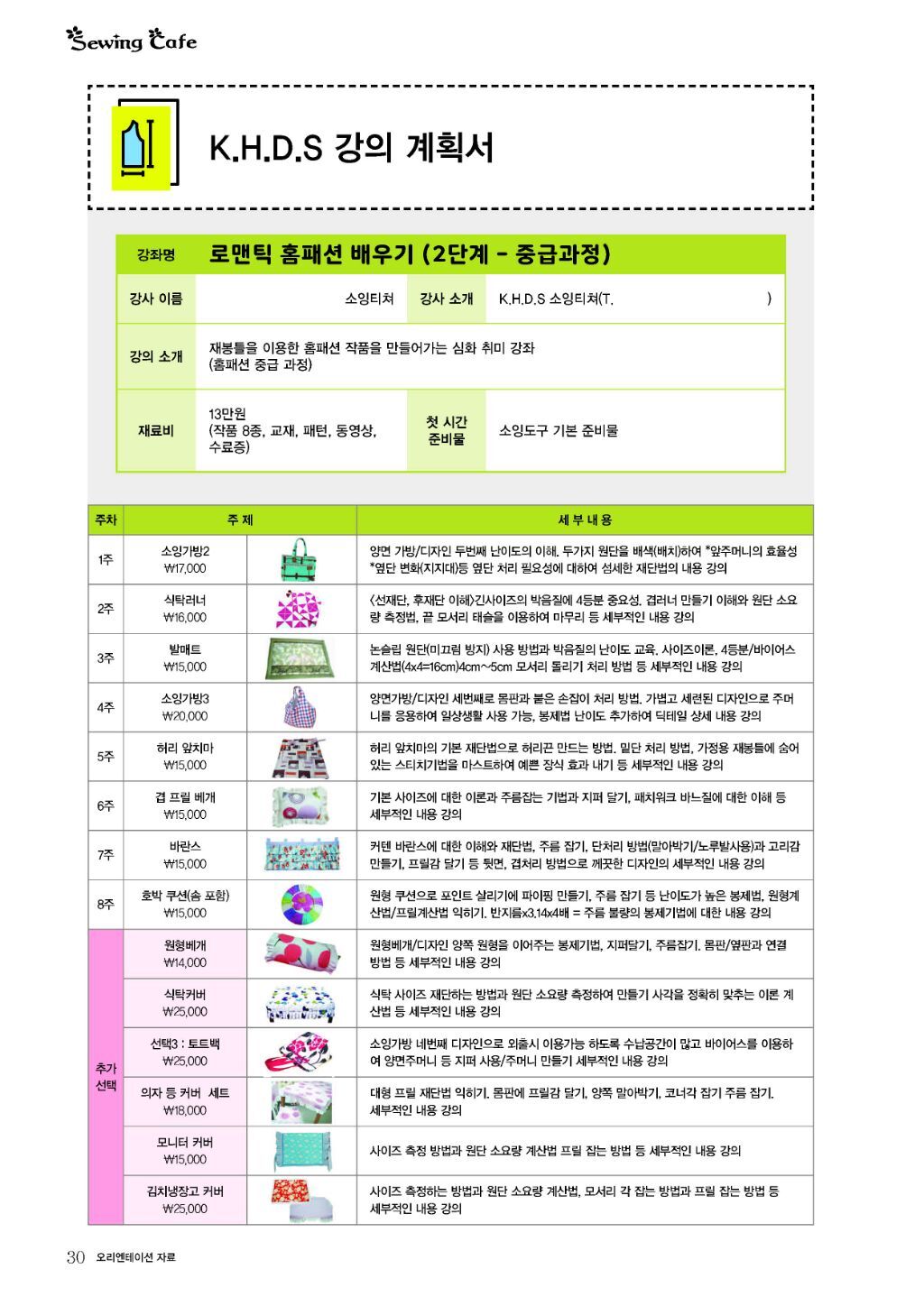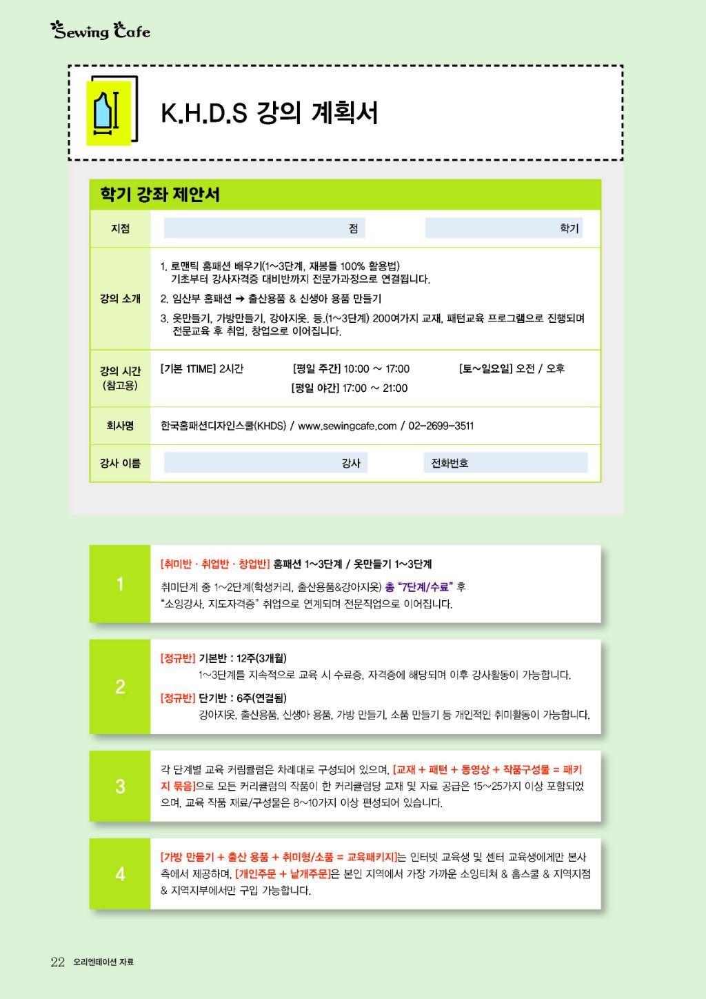 현재 소잉카페본교 진행되는 오리엔테이션교재