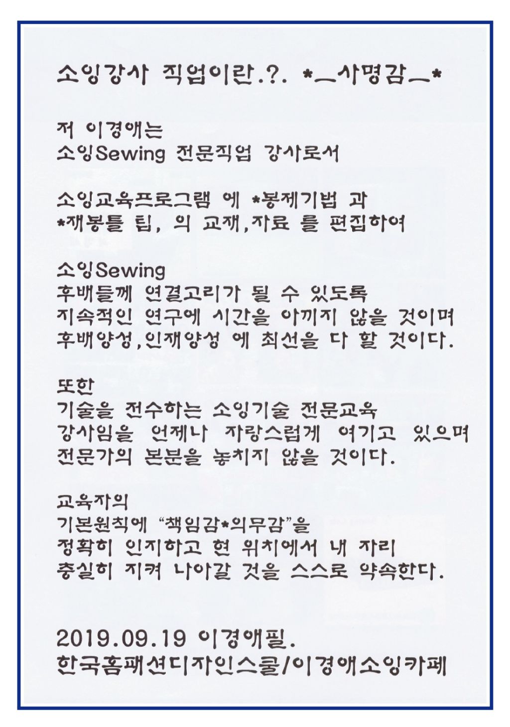 평생 바느질을 해온 현직 강사이자 한 단체를