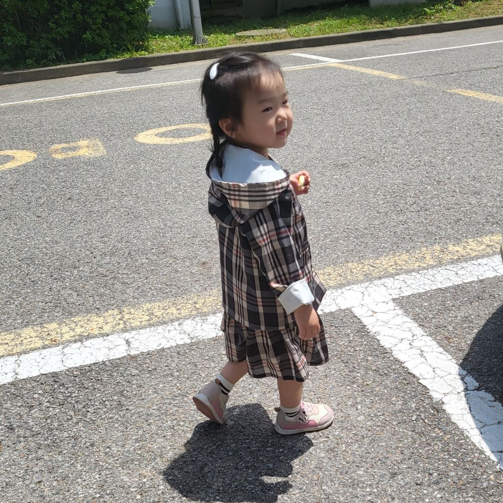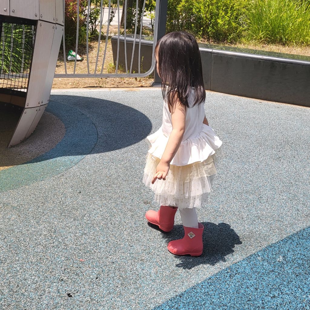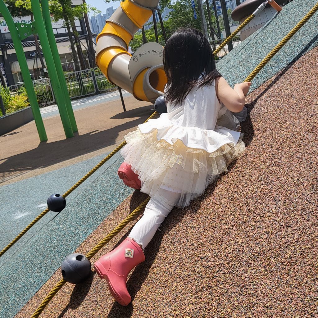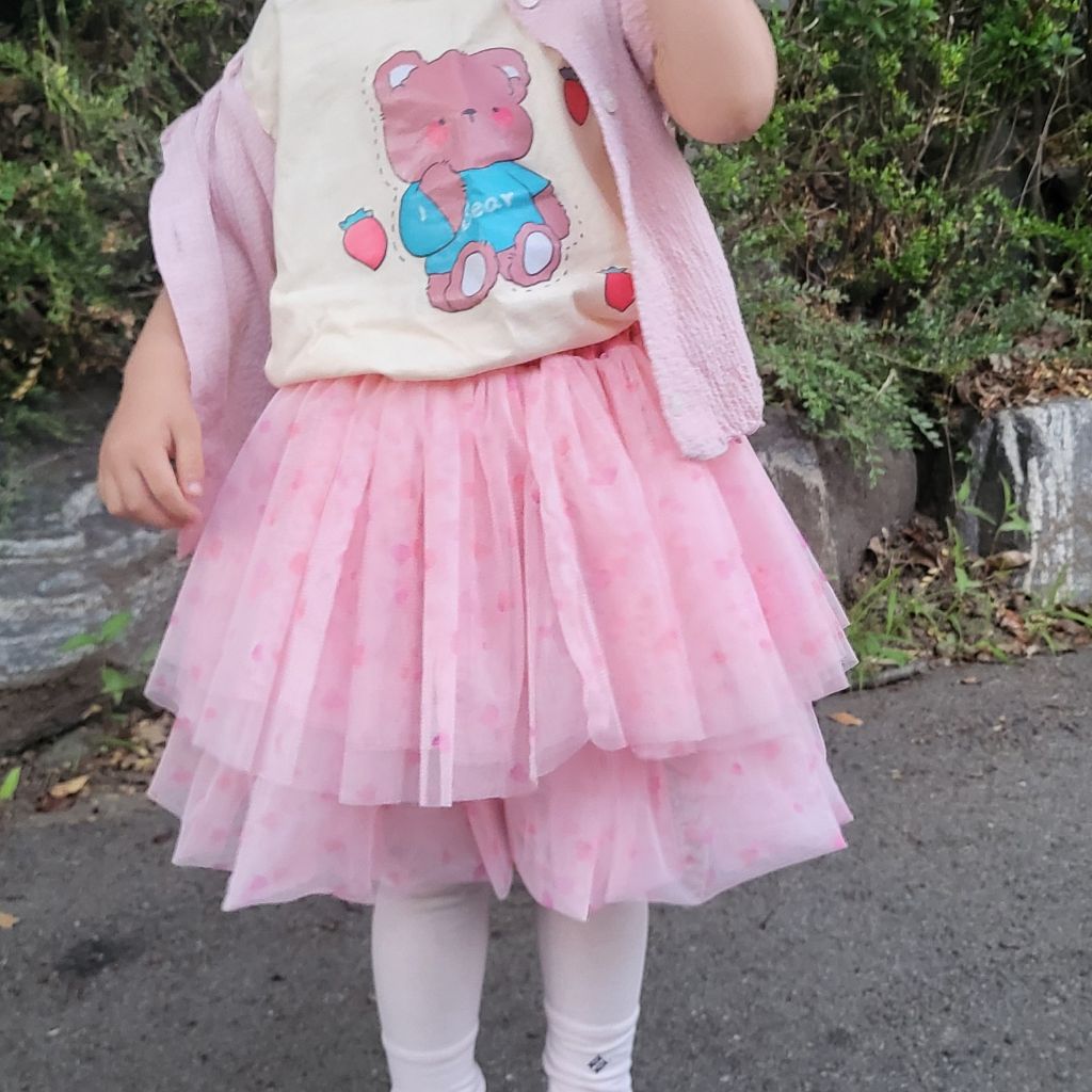 100사이즈 곧 36개월 되는 아이에게 딱 맞아요! 생각했던거보다 더 예쁘네요~ 다른분들은 스커트를 따로 만드시기도 했는데, 저는 그냥 부착!