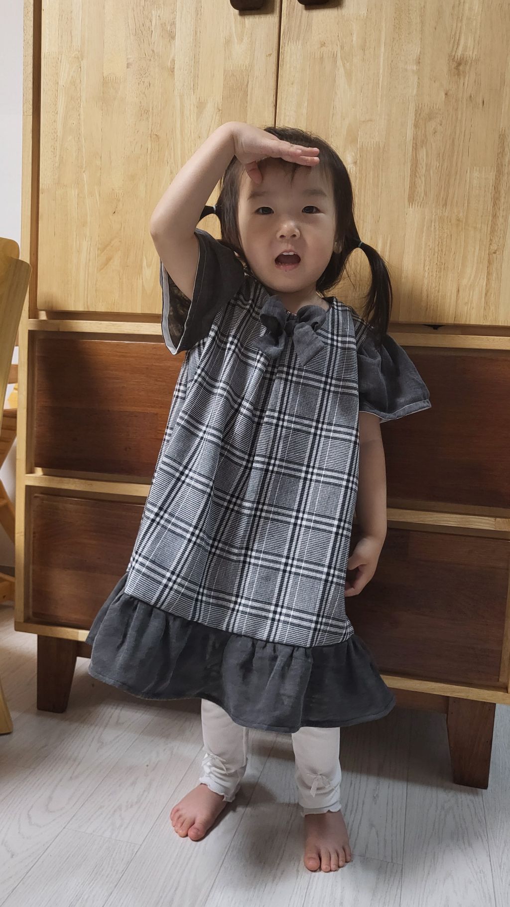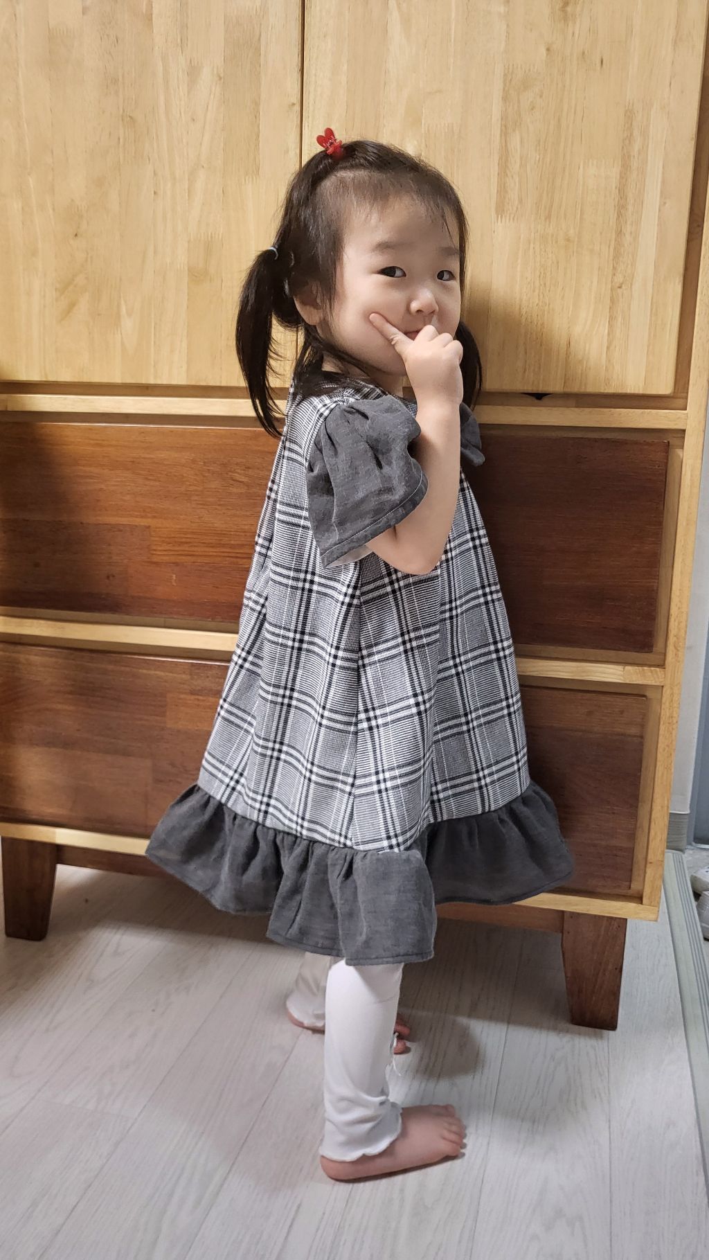 원 패턴에 있던, 스커트랑 프릴 길이가 너무 길어 기장 줄였어요!! 퍼프가 크게 나와서 더 귀엽게 느껴지네요~