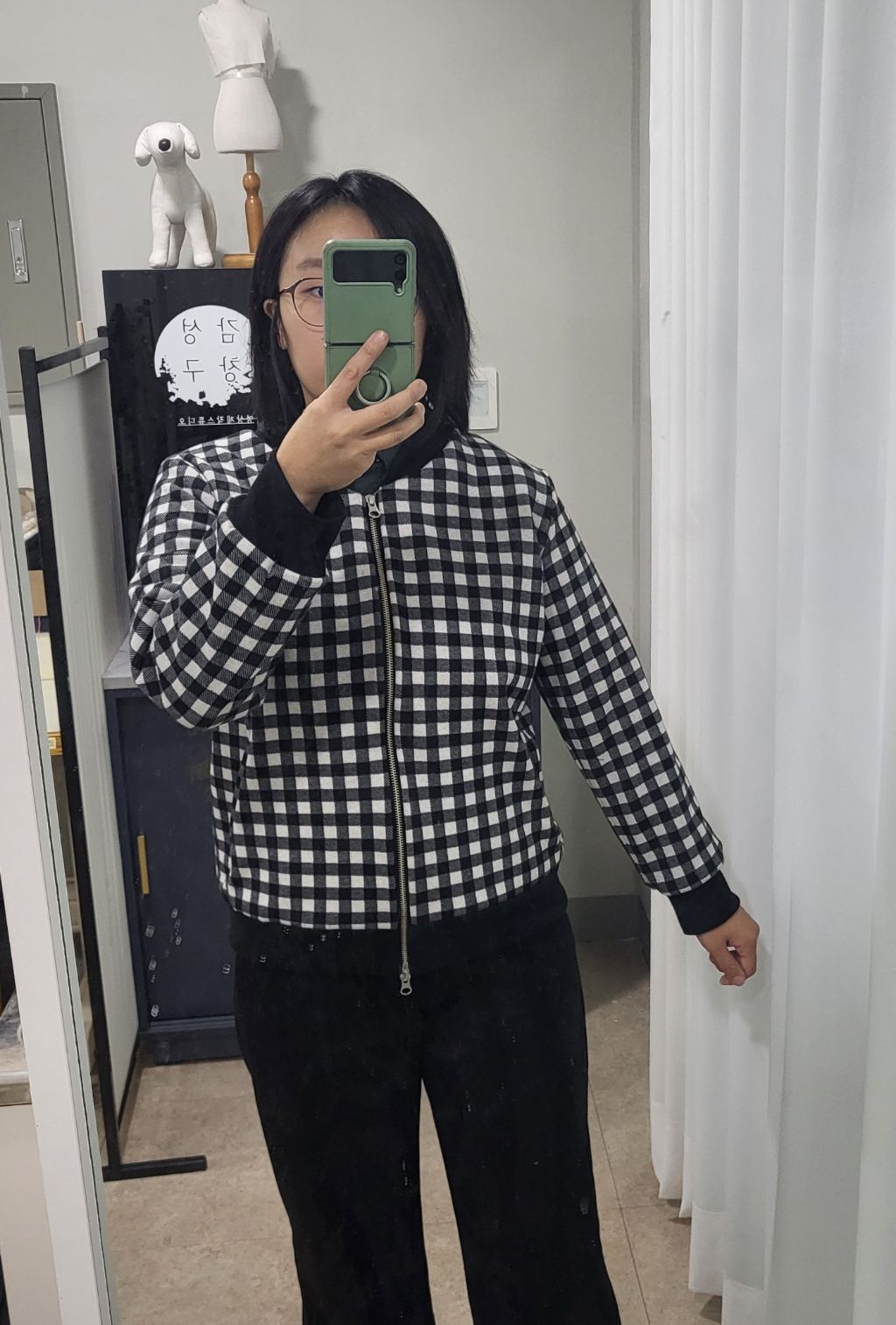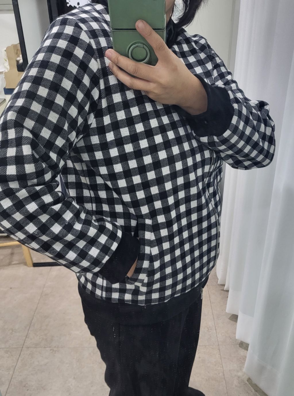 기모 안감 넣고, 체크 주머니 맞추려고 노력했어요~