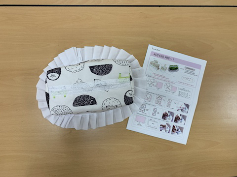 사진위쪽으로 OT시간에 자투리원단으로 제작한 소잉자 커버도 함께 한컷에 담겼어요^^