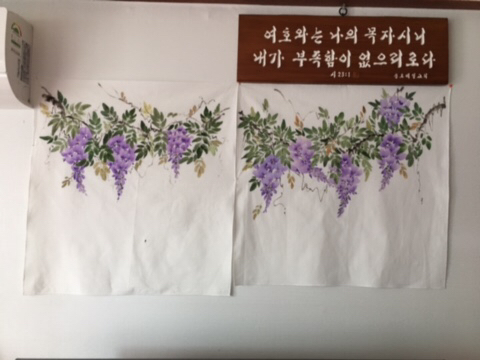 수강생분께서 오셔서 하신말씀이 티슈커버 만들어 그림그려서 선물하고 싶어 배우러 오셨다고 그런데 바쁘신분이라 뛰엄 뛰엄 오시고 정작 만들고 싶은 티슈커버는 못만들고 수업을 마쳤어요 마지막날 저에게 연습용으로 그리신거라고 그림을 주고 가셨어요 무얼해야하나 고민하며 인터록쳐서 임시로 걸어봤어요 자꾸보면 어떻게 해야될지 생각이 나겠죠 ㅎㅎ