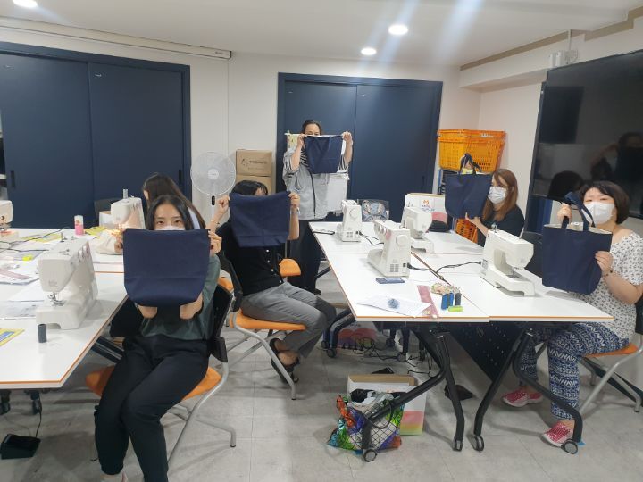 8명의 회원님을 두시간동안 재봉틀교육, 소잉가방