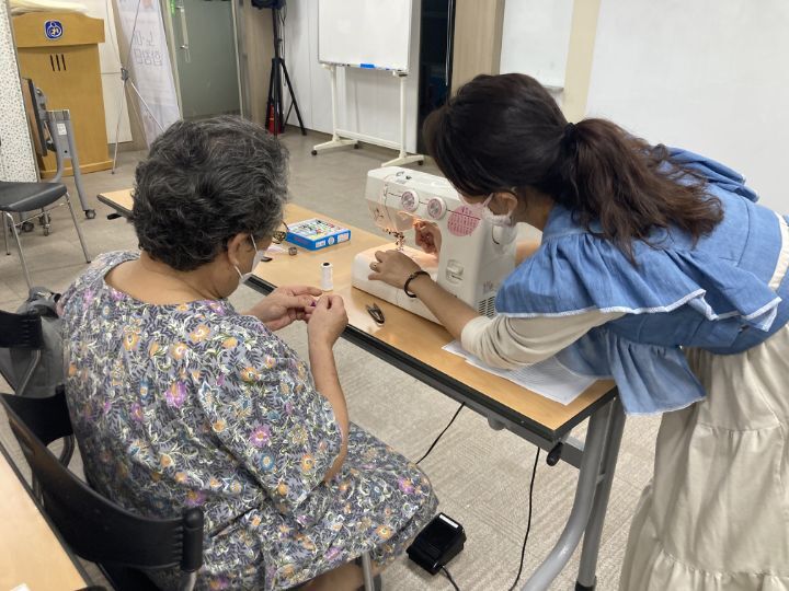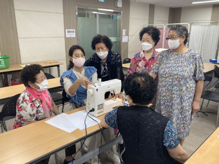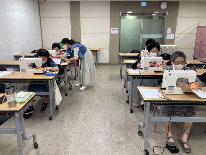 마들종합사회복지관에서 마을 어르신들 모시고 재봉틀 수업 진행했습니다