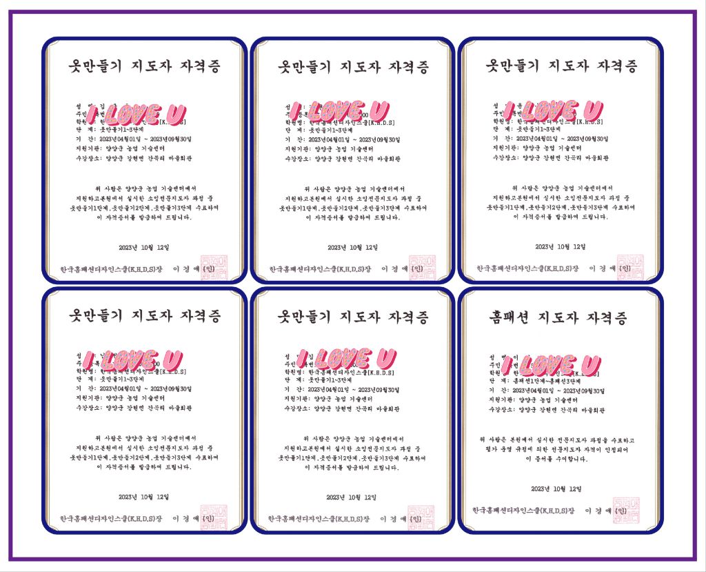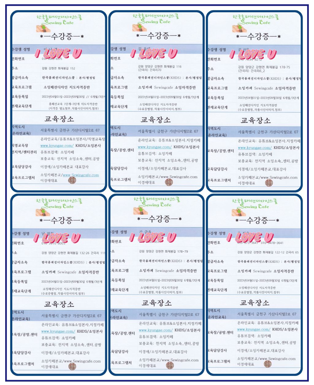 옷만들기 & 홈패션 인터넷교육생 6명 교육완료.