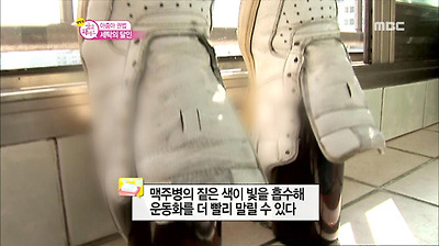 맥주병의 짙은 색이 빛을 흡수해 잘 마르지 않는 운동화 속까지