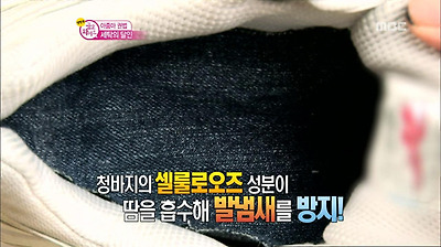 운도화에 넣어주면 청바지의 셀룰로오즈 성분이 땀을 흡수해 발냄새를 방지한다.