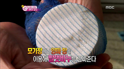 모기장이 없다면 집에 있는 양파망을 이용하여 빨랫비누를 감싸준다.