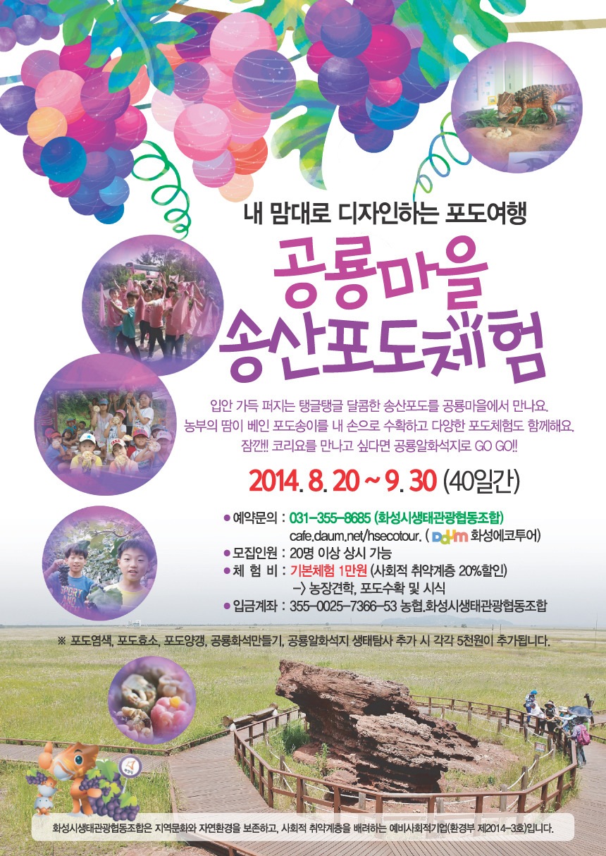 ● 추가체험 : 포도염색, 포도효소, 포도양갱, 공룡화석만들기, 공룡알화석지 탐사, 모기퇴치제만들기 등
