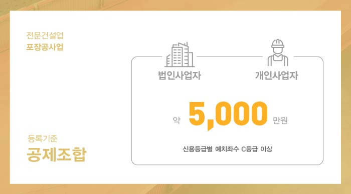 포장공사업 면허 등록을 하기 위한 공제조합 출자 예치 약 5천만원 가량을 진행 해 주셔야 합니다.