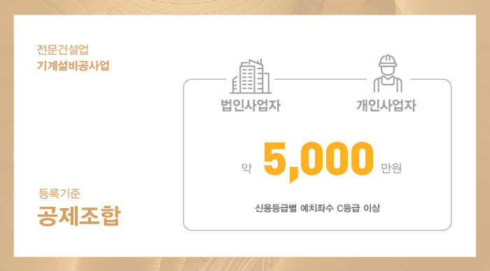 면허 등록을 위해 준비해야 할 자본금은 법인과 개인사업자 동일한 1억 5천만원을 기준으로 하고 있으나, 이 자본금은 기계설비공사업 운영을 목적으로 한 건설업 실질자본금의 형태로 보유되어야 함을 유의해야 합니다.