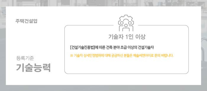자격요건을 충족하는 기술인력이 건설기술인협회에 기술자 입사신고 처리 되어 있도록 준비하여 주셔야 하는데요, 이를 위해 협회를 통해 업체 등록을 먼저 진행해주셔야 합니다.