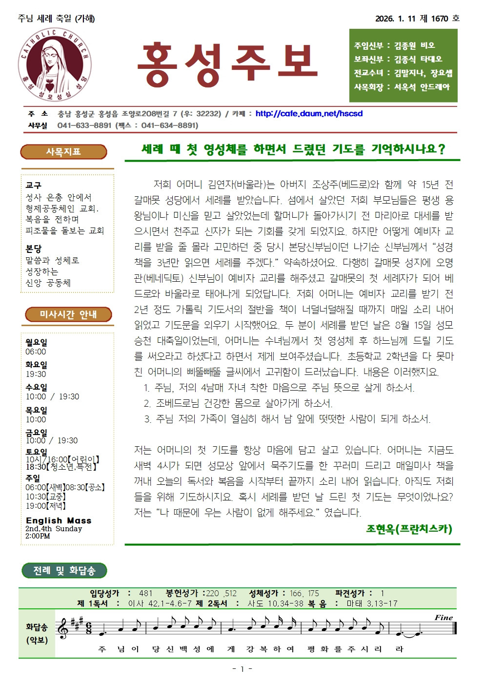 주님 세례 축일 홍성주보 작성자조현옥|작성시간26.01.13|조회수239 목록 댓글 0 글자크기 작게가 글자크기 크게가 다음검색 현재 게시글 추가 기능 열기 북마크 공유하기 신고 센터로 신고 댓글 댓글 0 댓글쓰기 답글쓰기 댓글 리스트