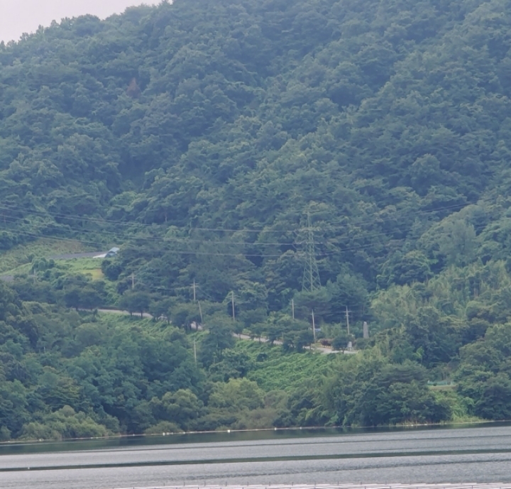 보령호 반대편 에서 바라본 서짓골 성지 그림 입니다.