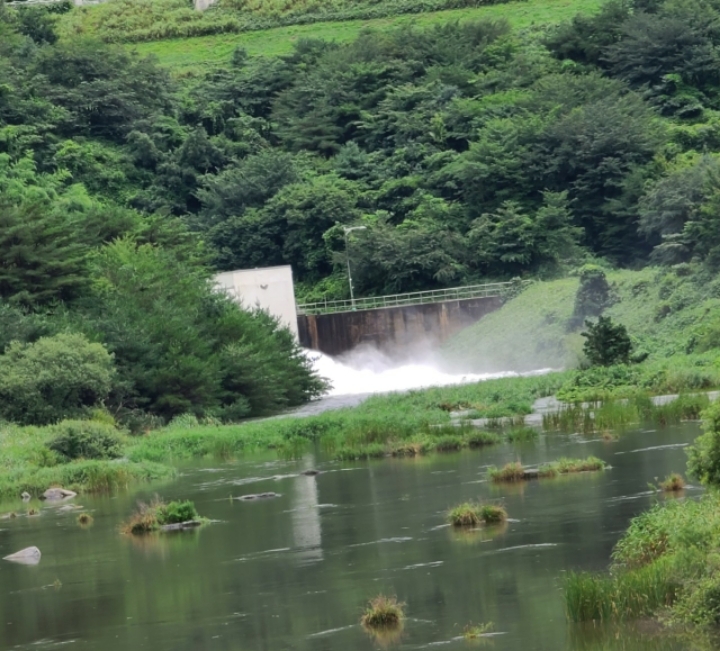 순례를 마치고 보령호를 돌아본길에...장맛비에 만수 한 보령호 담수를 방류합는그림...몇 년만에 첨으로 방류합니다.