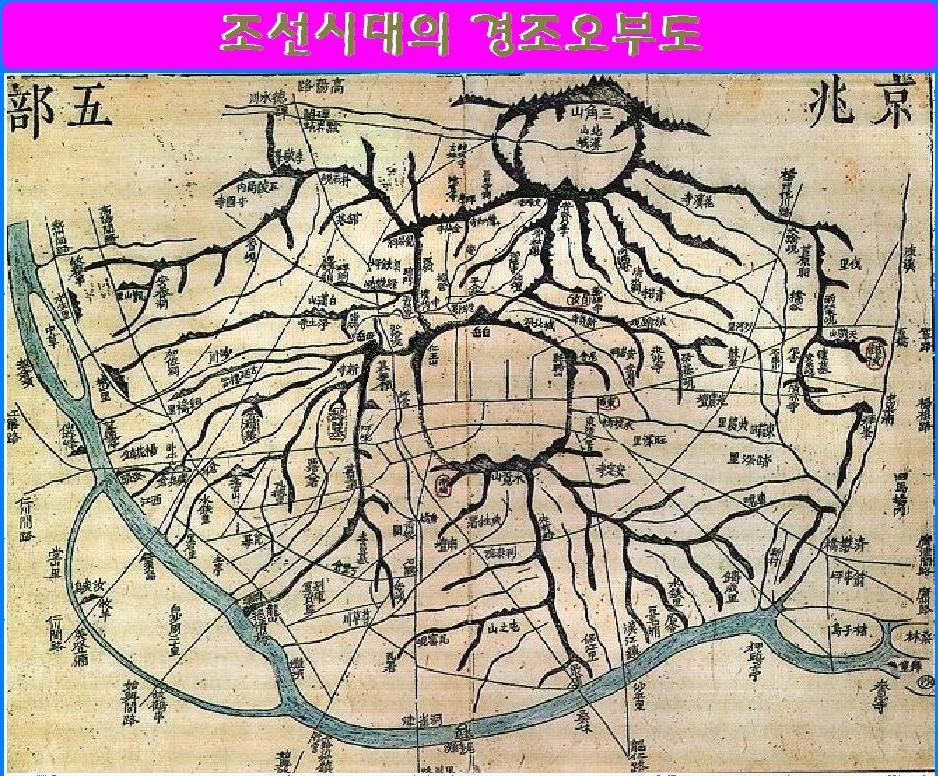 1394년 한양으로 천도한 이태조는 다음해인 1395년 6월 6일에는 한양부를 한성부라 하였으며 9월에는 종묘 · 사직 · 궁궐을 완성하였고, 다음해인 1396년에는 백악산 · 낙산 · 목멱산 · 인왕산을 연결하는 약 18㎞의 도성을 쌓았으며 한성부의 행정구역을 5부(동부 · 서부 · 남부 · 북부 · 중부) 52방으로 하고 각 방에는 방명표를 세우게 하였다.[註38] 이 때에 각 부의 방명은 다음과 같다. 「동부 12방:연희방(燕喜坊), 숭교방(崇敎坊), 천달방(泉達坊), 창선방(彰善坊), 건덕방(建德坊), 덕성방(德成坊), 서운방(瑞雲坊), 연화방(蓮花坊), 숭신방(崇信坊), 인창방(仁昌坊), 관덕방(觀德坊), 흥성방(興盛坊) 남부 11방:광통방(廣通坊), 호현방(好賢坊), 명례방(明禮坊), 대평방(大平坊), 훈도방(勳陶坊), 성명방(誠明坊), 악선방(樂善坊), 정심방(貞心坊), 명철방(明哲坊), 성신방(誠身坊), 예성방(禮成坊) 서부 11방:영견방(永堅坊), 인달방(仁達坊), 적선방(積善坊), 여경방(餘慶坊), 인지방(仁智坊), 황화방(皇華坊), 취현방(聚賢坊), 양생방(養生坊), 반석방(盤石坊), 신화방(神化坊), 반송방(盤松坊) 북부 10방:광화방(廣化坊), 양덕방(陽德坊), 가회방(嘉會坊), 안국방(安國坊), 관광방(觀光坊), 진정방(鎭定坊), 순화방(順化坊), 명통방(明通坊), 준수방(俊秀坊), 의통방(義通坊) 중부 8坊:정선방(貞善坊), 광행방(廣幸坊), 관인방(寬仁坊), 수진방(壽進坊), 징청방(澄淸坊), 장통방(長通坊), 서린방(瑞麟坊), 견평방(堅平坊)」 그런데 『세종실록』 지리지에는 서부의 영견방과 인지방, 취현방의 3방을 폐지하여 49방으로 하였다.[註39] 이와 같은 49방제도는 『신증동국여지승람(新增東國輿地勝覽)』에도 변동이 없었던 것으로 보아 중종때까지는 변동이 없었던 것이다. 그러나 어느 때에 변동되었는지 확실한 것은 알 수 없으나[註40] 동부에서 연희방 · 천달방 · 덕성방 · 서운방 · 흥성방 등 6개방을 폐지하여 12개방에서 6개방으로 되었으며, 남부는 성신방 · 정심방 · 예성방 등 3개방을 폐지하고 두모방 · 한강방 · 둔지방 등 3개의 방을 신설하여 방수는 변함없이 11개방이었다. 서부에는 신화방을 폐지하고 용산방과 서강방을 신설하여 9개방이 되었으며, 북부에는 명통방을 폐지하고 새로 상평방 · 연은방 · 연희방[註41]을 신설하여 12개방이 되었고 중부에는 8개방이 변함없었다. 따라서 영조시대의 한성부는 5부 46방이었으며 그 밑에 328계(契)를 두었다. 그 후 고종 2년에 반포한 육전조례에는 동부에 경모궁방(景慕宮坊)이 신설되어 47방이 되었으며 계도 11개가 증가되어 339계가 되었다. 조선 초기의 한성부 관할구역은 도성으로부터 사방 10리까지로 하였으나 대부분의 인구가 도성내에 집중되어 있었으므로[註42] 각 방들도 도성내에 많았으며 도성외에는 서대문 밖의 서부 반송방과 서소문 밖의 서부 반석방 그리고 동대문 밖의 개천이북 일대에 동부 숭신방 · 인창방과 그 이남에 남부 예성방 · 성신방 등 6방이 있을 정도였다. 즉 도성으로부터 10리내의 지역에는 국초부터 산림보호의 목적으로 개발을 제한하여 집을 짖는 것은 물론 장례와 벌목을 금했으며 입산금지의 표를 세워 목근(木根), 초근(草根)의 채취나 토석굴취(土石堀取) 등을 모두 금했으므로[註43] 동대문 밖과 서대문 밖의 대로변과 거주가 편리한 평탄한 곳에만 취락을 이루었던 것으로 생각된다. 그러나 임진왜란과 병자호란을 겪은 후 많은 이농자들이 전국각지에서 서울로 모여들어 도성내에서 더 정착할 수 없어 성밖에 흩어져 살게 되었으며 또한 한강연안의 용산, 마포, 서강, 동작, 서빙고, 두모포 등이 경제적으로 크게 발달하면서 인구가 증가하여 인구가 희소한 종래의 방을 폐지하고 인구가 조밀한 성외에 새로운 방을 설치하게 되었던 것이다.[註44] 고종 2년(1864)에 발간된 『육전조례』에는 동부의 경모궁방이 신설되고 10여개의 계가 신설되어 있을 뿐이며 큰 변동은 없었다. 태조 5년(1396)에서 고종 2년(1865)까지의 한성부 5부의 방 · 계의 변천과정을 살펴보면 <표:한성부 5부 방 · 계의 변천표>와 같다.[註45] 이상과 같이 태조때는 한성부를 5부 52방으로 하였다가 세종시는 오부 49방으로 하였고 영조시는 5부 46방 328계로 하였으며 고종초에는 5부 47방 339계로 하였다. 그러나 1894년 갑오경장 때에는 5부를 오서(五署)로 고치는 동시에 계와 동을 늘려 47방 288계 775동으로 하였다. 「동서:연화방, 창선방, 건덕방, 숭인방, 숭교방(성내 5방), 숭신방, 창신방(성외 2방):7방 20계(성내 15계, 성외 5계) 165동(성내 92동, 성외 73동) 남서:광통방, 회현방, 명례방, 대평방, 훈도방, 악선방, 성명방, 명철방(성내 8방), 한강방, 둔지방, 두모방(성외 3방):11방, 100계(성내 82계, 성외 18계), 163동(성내 139동, 성외 24동) 서서:인달방, 여경방, 적선방, 양생방, 황화방, 반송방, 반석방(성내 7방), 용산방, 서강방(성외 2방):9방, 70계(성내 46계, 성외 24계), 190동(성내 150동, 성외 40동) 북서:순화방, 준수방, 통의방, 관광방, 안국방, 진장방, 가회방, 양덕방, 광화방(성내 9방), 상평방, 연은방, 연희방(성외 3방) 12방, 42계, 130동(성내 13계, 성외 29계, 성내 58동, 성외 72동) 중서:서린방, 견평방, 경행방, 징청방
