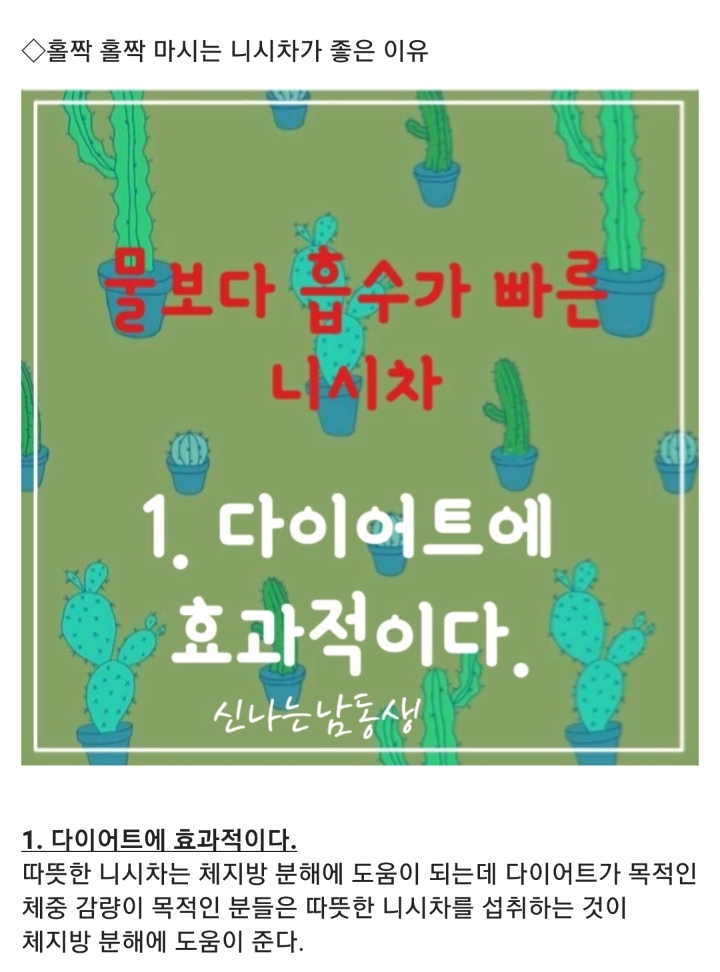 간산시 일반음료수보다 니시차로 바꾸어 많이들 드셔야 겠네요..