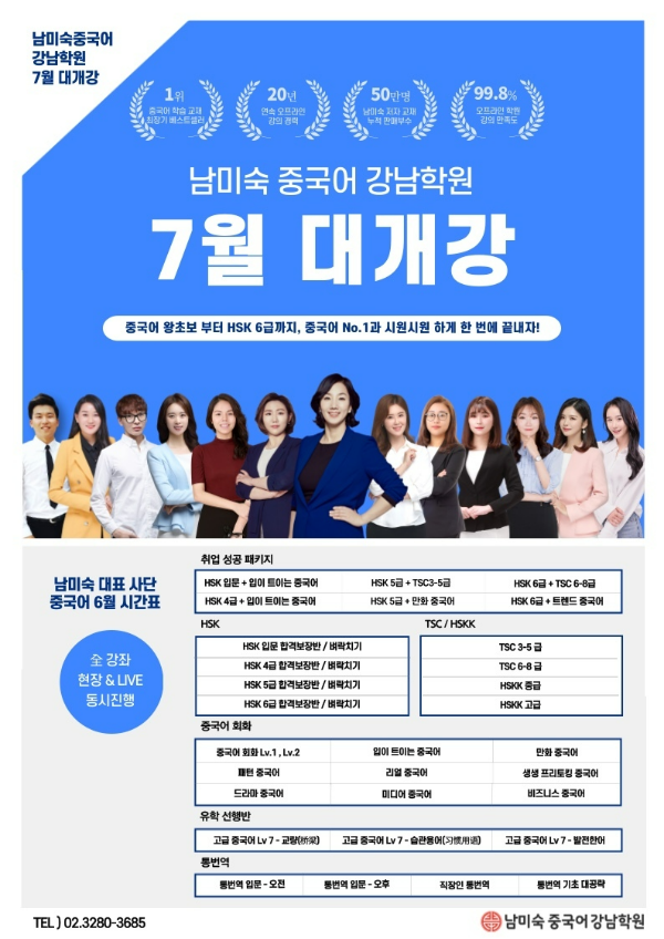 남미숙 중국어 강남학원 7월 개강(7/4 월) 안내드립니다.