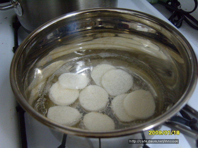 찜기에 쪄야하지만 요렇게 적은 량을 찌기위해 찜기사용이 번거로워 끓는물에서 5분정도 익혀냈다.