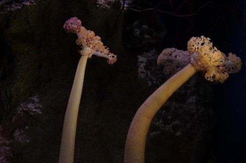 ► 형 태 : 군체는 폴립이 나지 않는 병부가 전체의 2/3 이상을 차지하며, 상부에서 5개로 분기하고 다시 2차 분기한다. 매우 긴 자루 부분이 특징이며, 몸은 부드럽다. 뿌리 같은 부분을 모래 속에 묻고, 해저로부터 직립해 있다.