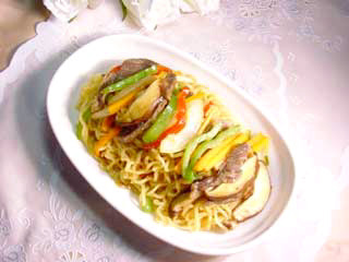 라면수프 대신 굴소스로 간을 맞추면 독특한 맛의 볶음라면이 된다. |