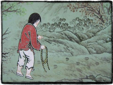 동자승이 소를 찾고 있는 장면이다. 자신의 본성을 잊고 찾아헤매는