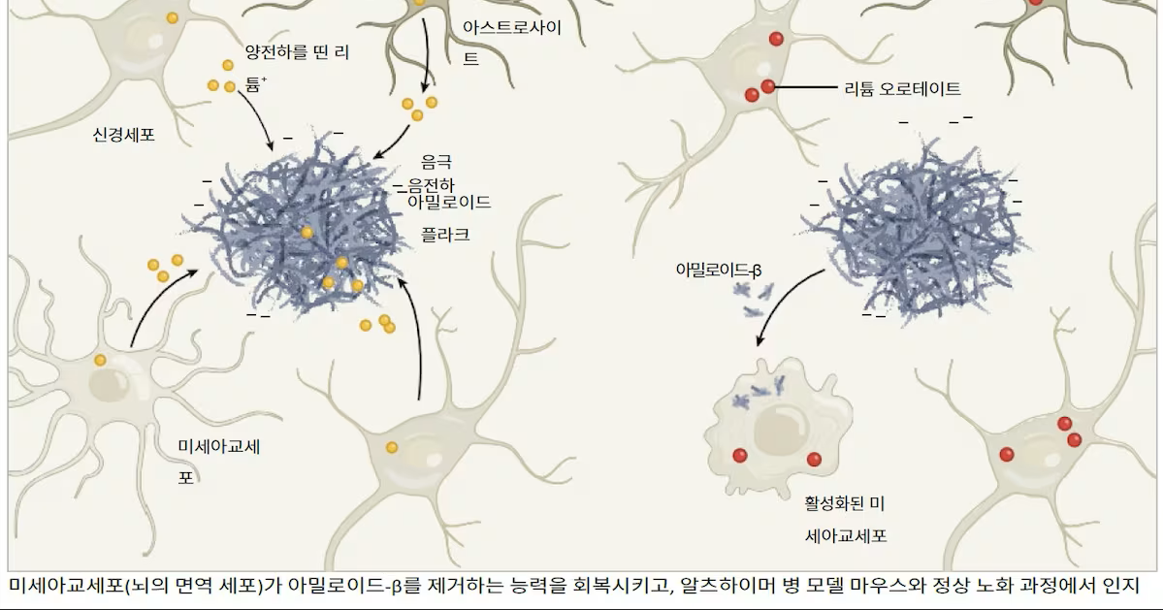 리튬은 뇌에서 신경세포 보호, 시냅스 기능 유지, 염증 억제에 관여합니다.
