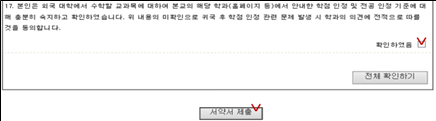 - 외국대학 수강신청 시 본교에서 이수한 교과목명과 동일한 교과목을 외국대학교에서 이수할 수 없습니다.