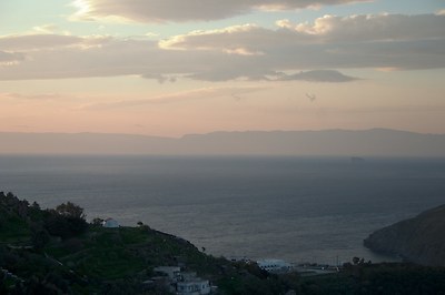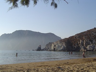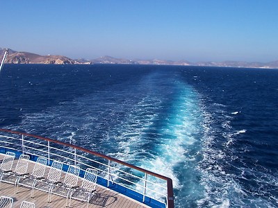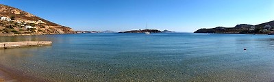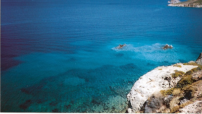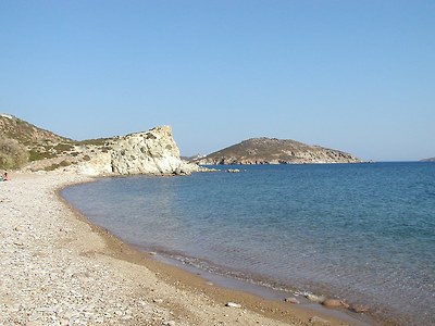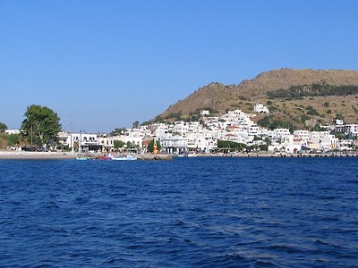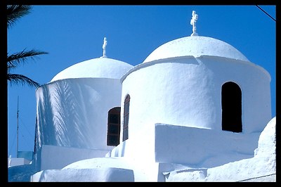 주민은 2700여명인데, 절반 이상이 섬 중앙의 산언덕에 있는 호라 마을(Chora)에 거주하고 있습니다. 특히 사진에서 보듯이 이곳의 집들은 대부분 백색이어서 바다와 함께 어우러져 매우 깨끗하고 단아하게 느껴집니다. 맨 꼭대기 어두운 색의 구조물을 눈여겨 보시기 바랍니다..
