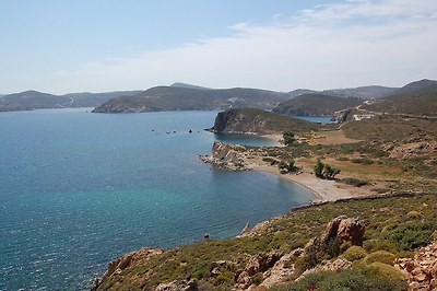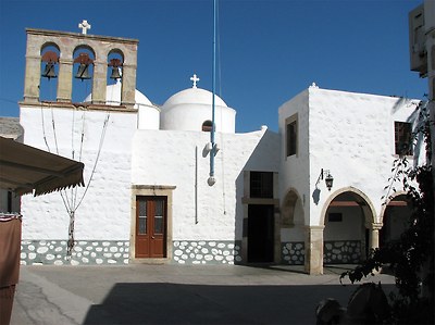로마제국 시대에 이 밧모섬은 종교, 정치 중범자들을 귀양보내던 유배지였는데, 한번 들어가면 살아서 나오기 힘든 생지옥이었다고 합니다. 요한계시록의 저자인 요한이 로마의 도미티아누스황제의 박해때에 이 섬으로 유배와서 약 18개월간 유배생활을 하면서 계시록을 기록한 장소로 알려진 섬입니다(계1:9).
