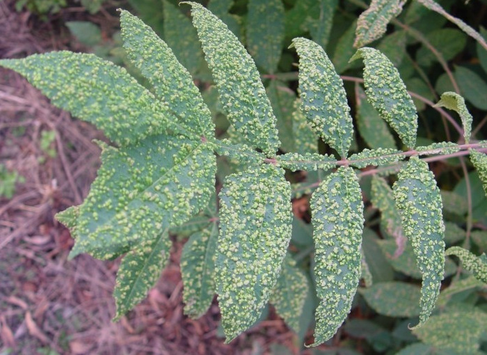 여기에는 진딧물 종류인 ‘이부자진딧물’이 기생하여 잎의 즙액을 빨아먹으면