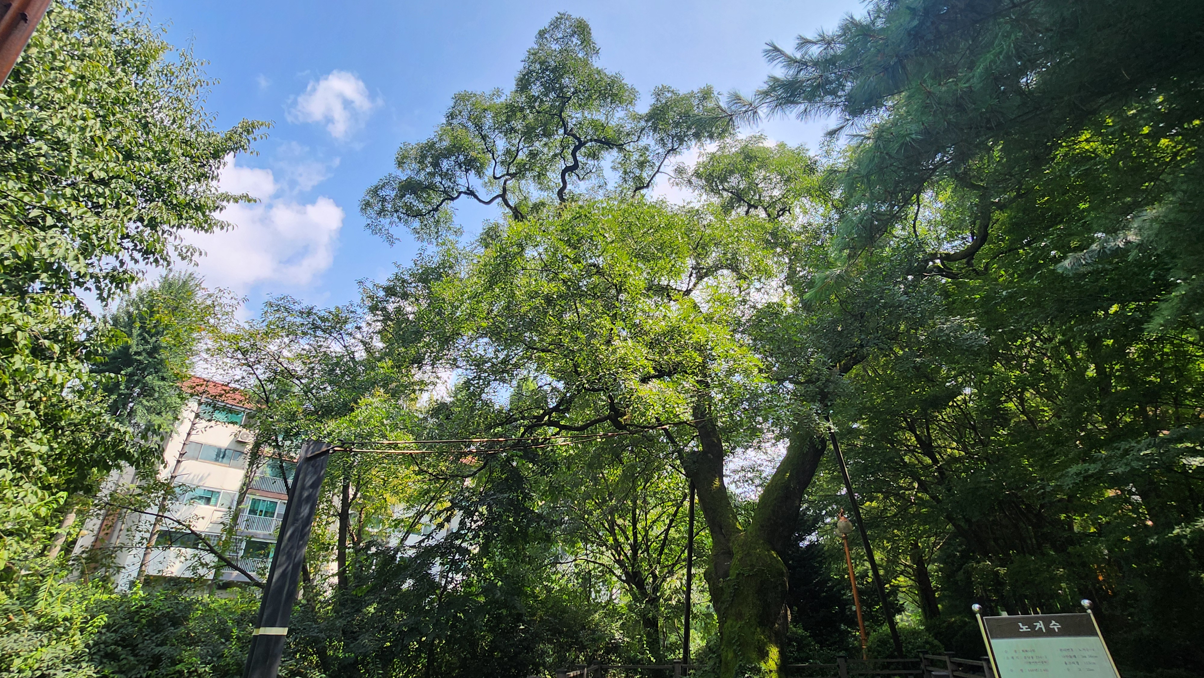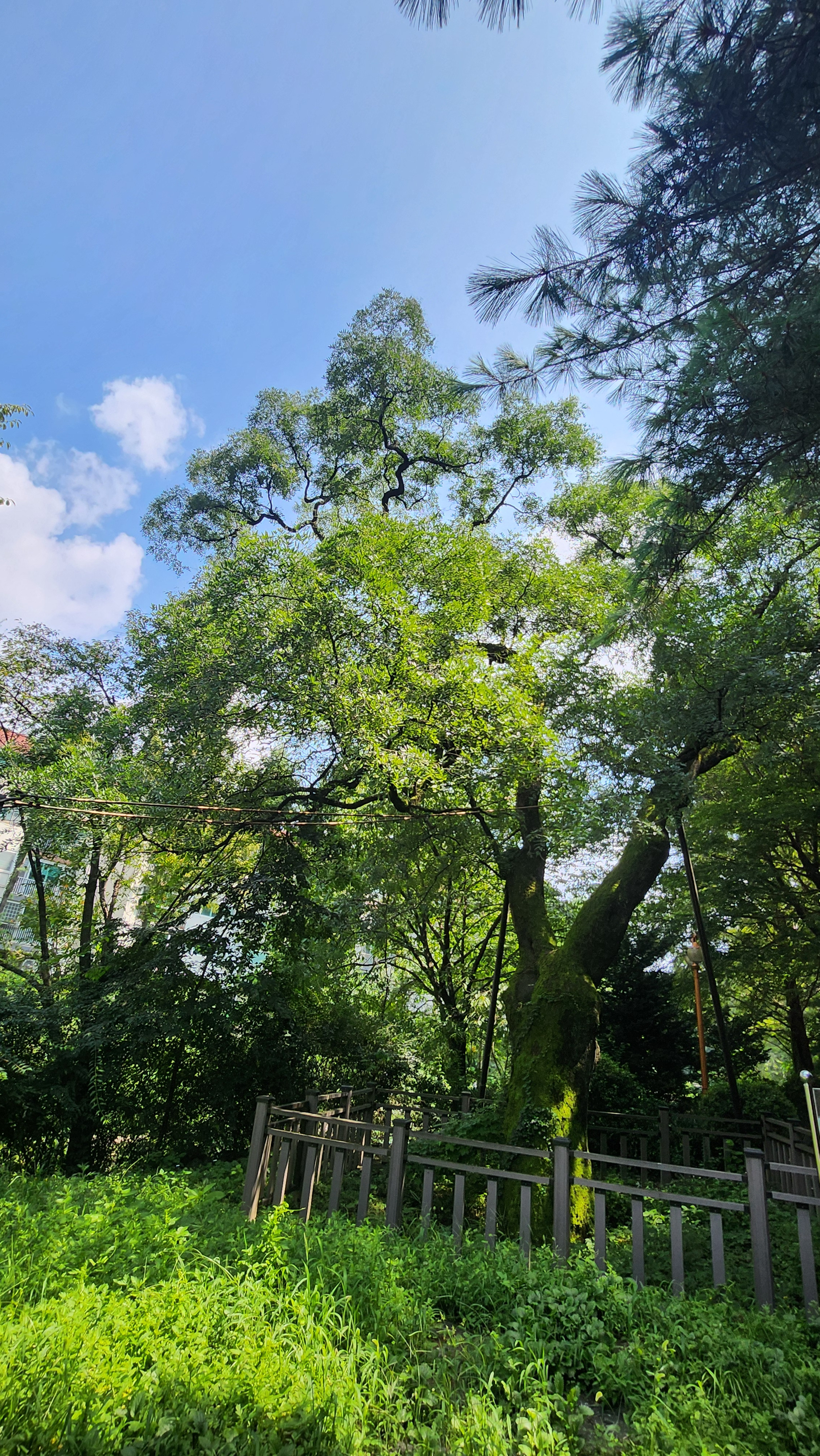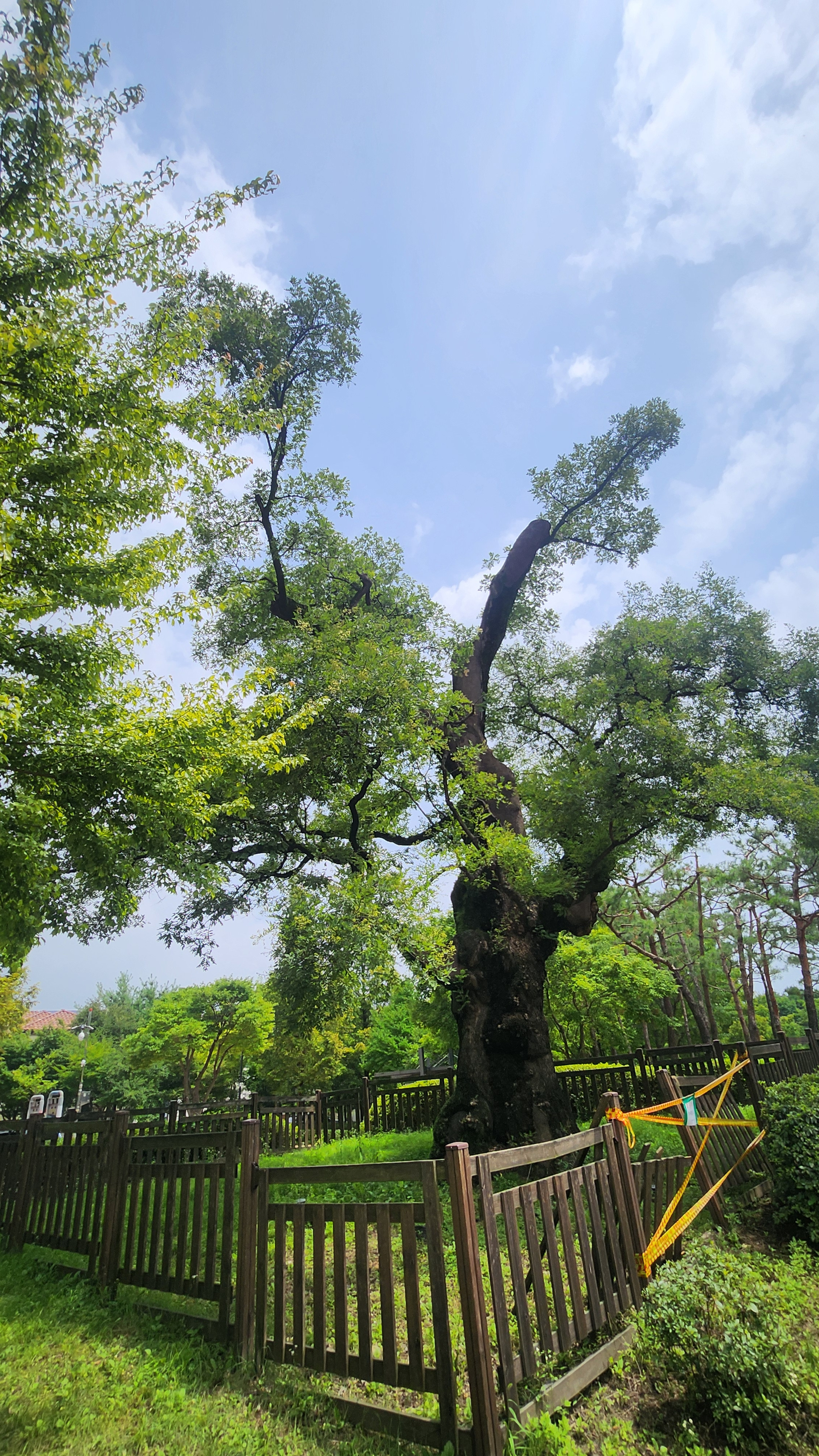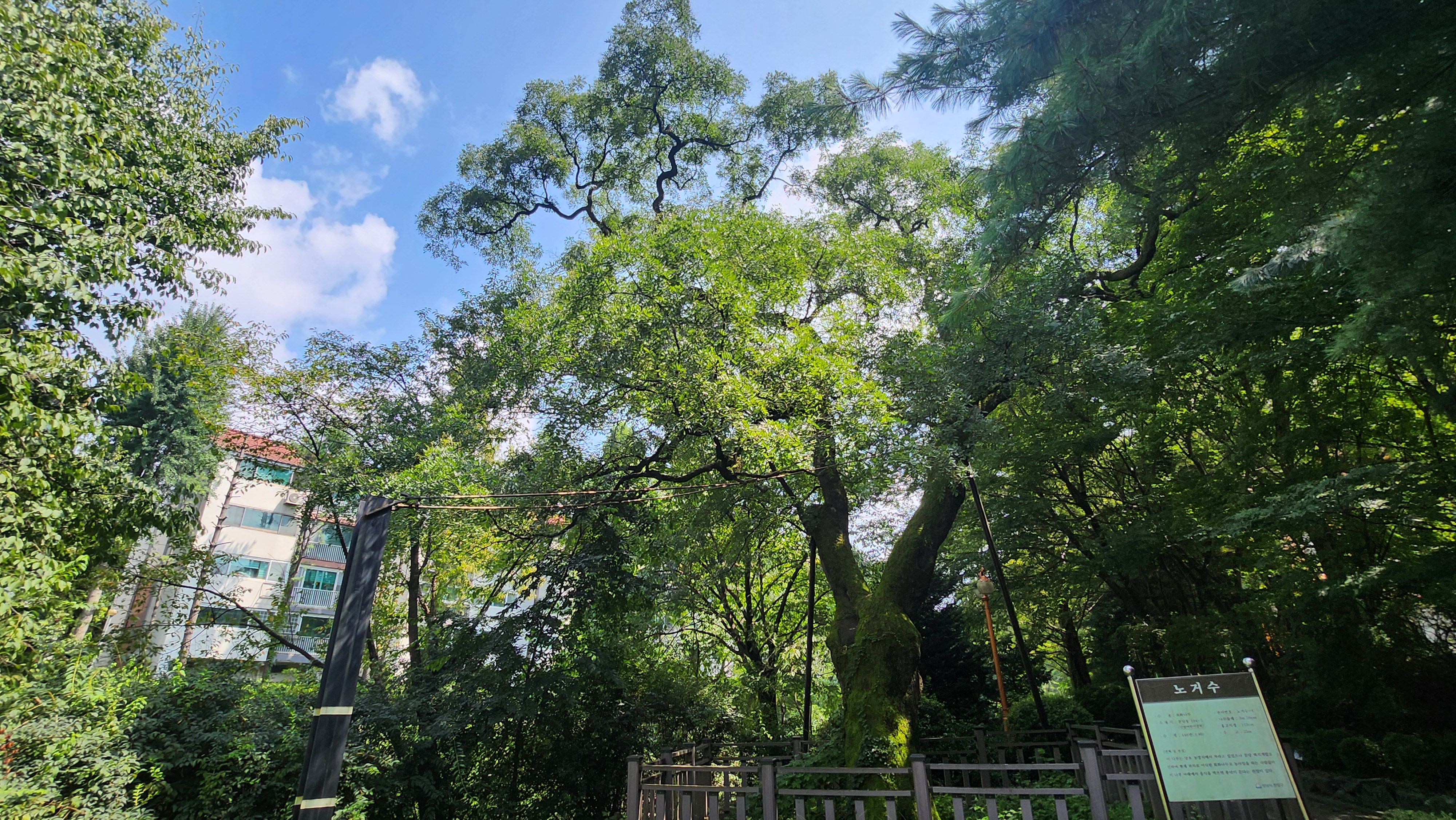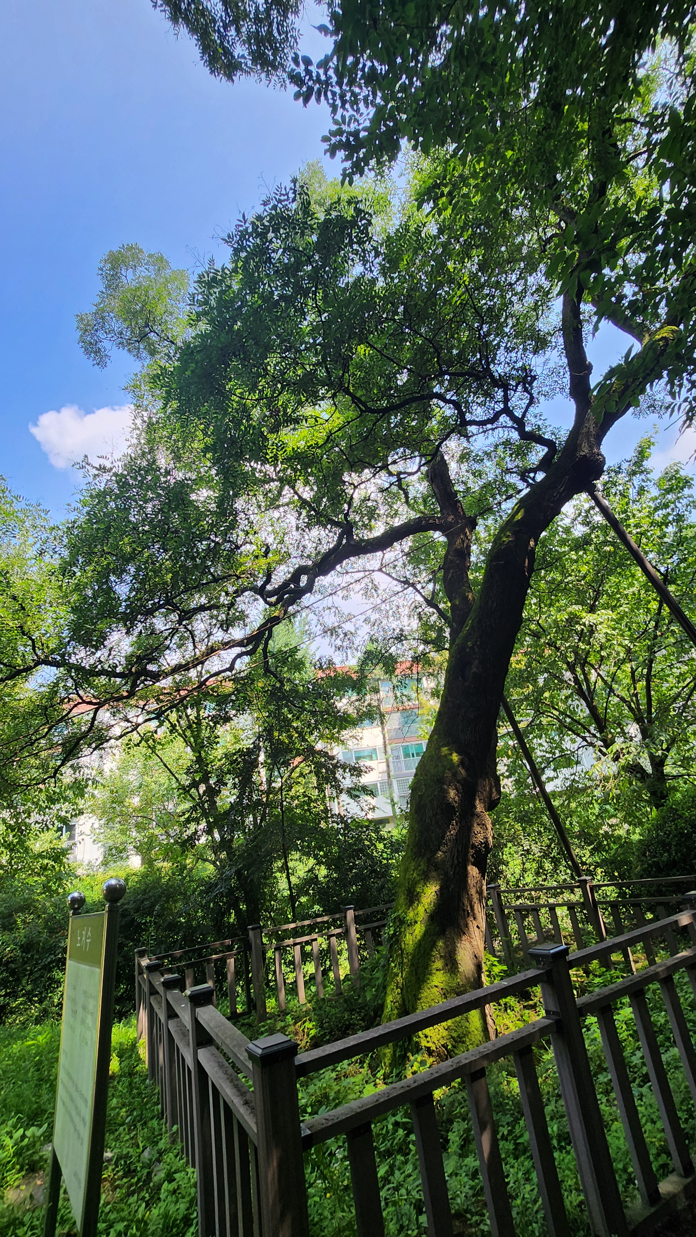 묘소 입구에 회화나무 몇몇그루가 있다.