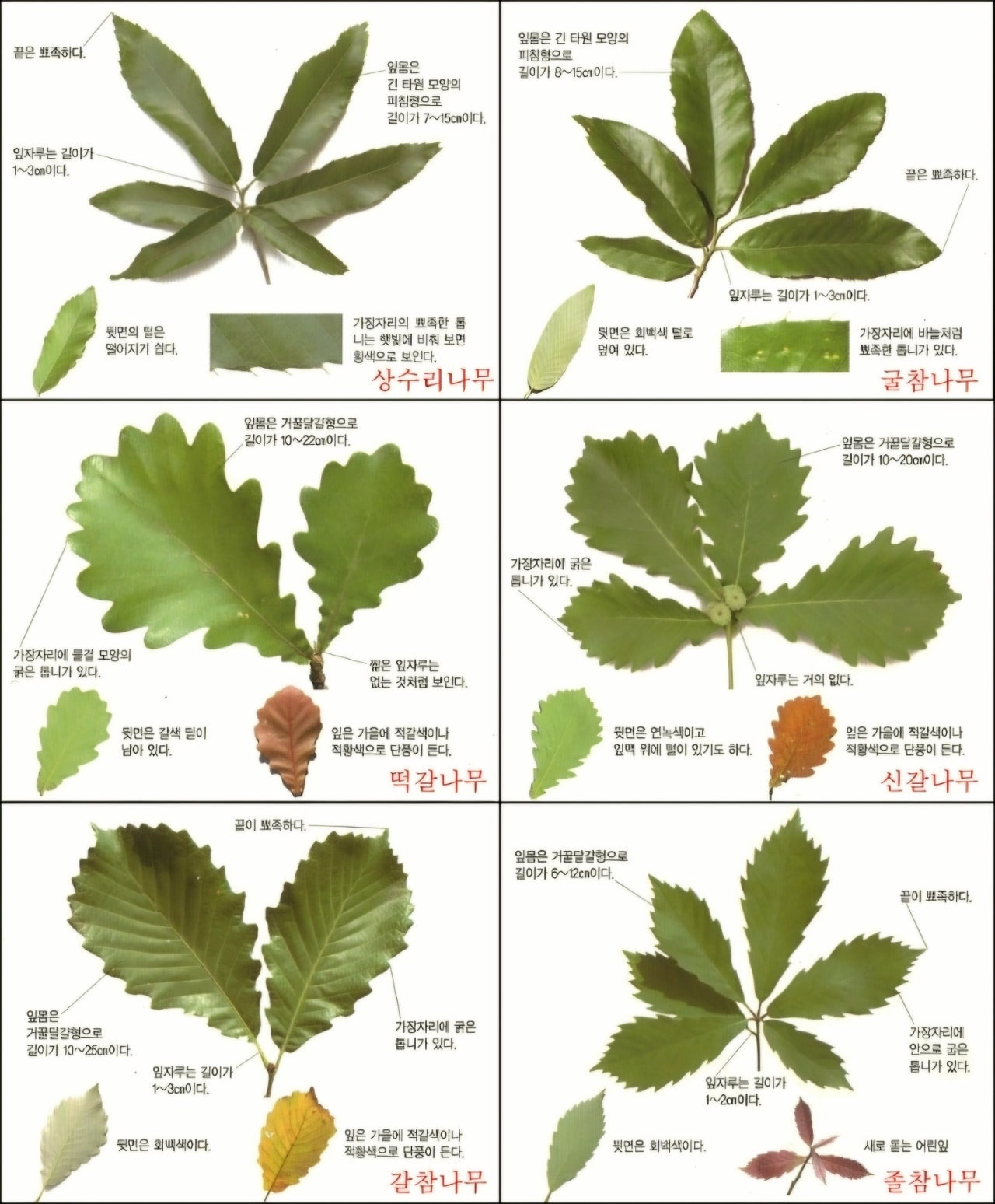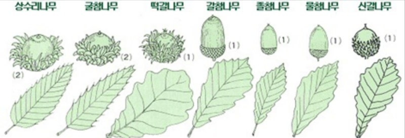 ※ 참나무류 6형제 잎, 열매 비교표
