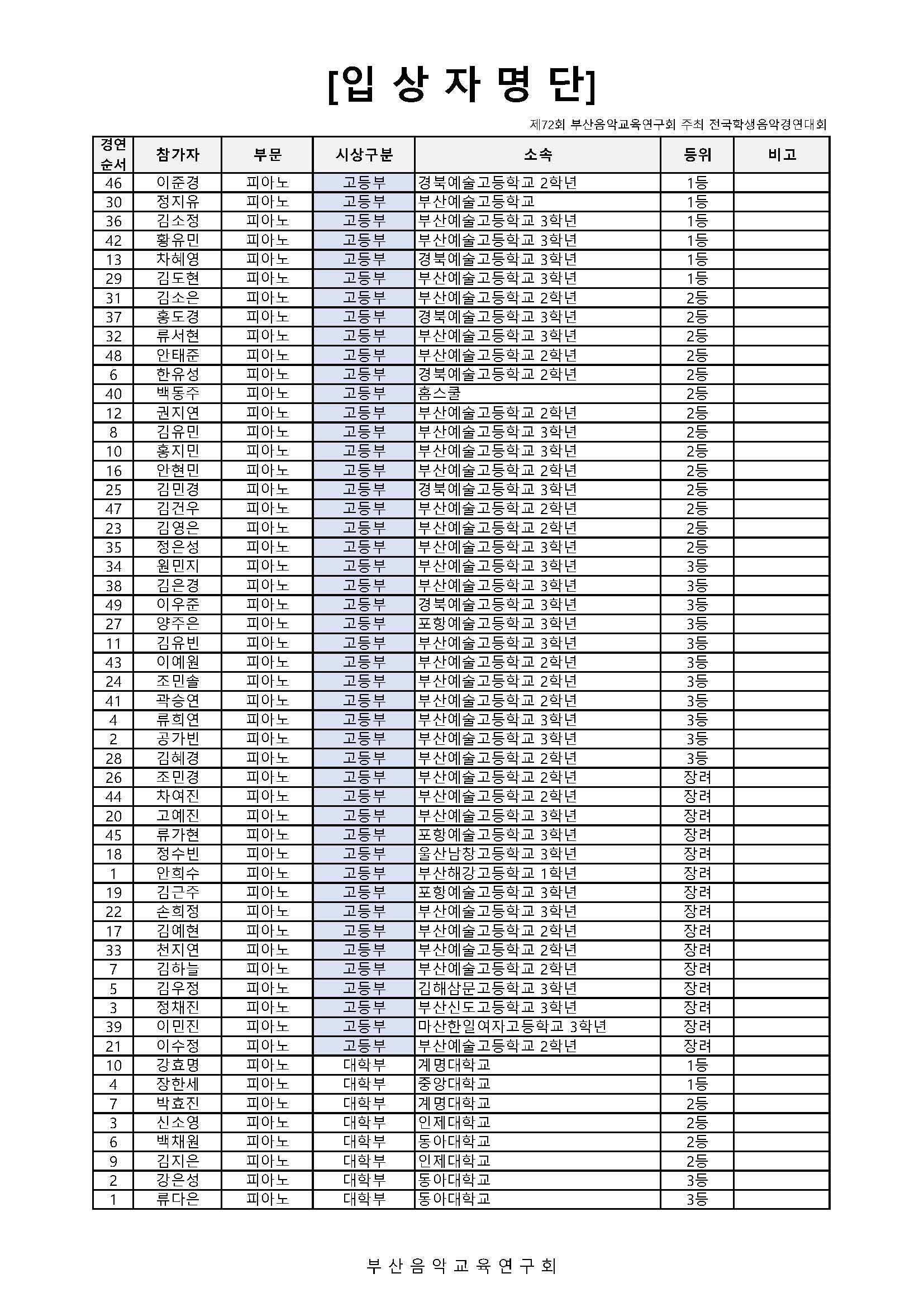 2021년 제72회 입상 결과 작성자키타라|작성시간21.05.16|조회수2,025 목록 댓글 0 글자크기 작게가 글자크기 크게가 다음검색 현재 게시글 추가 기능 열기 북마크 공유하기 신고 센터로 신고 댓글 댓글 0 댓글쓰기 답글쓰기 댓글 리스트