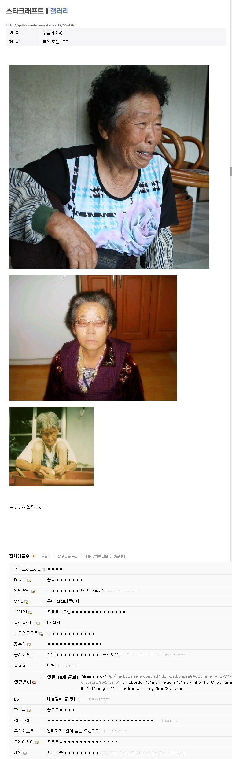 작성자태왕사미자 작성시간 10.12.19 사진내려라 노인분들가지고 개그는 하지말아라 나중에 사진올림놈 나이먹으면 그대로 당한다`