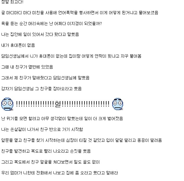 작성자黑玉 작성시간 11.10.17 표현력 ㅋㅋㅋㅋㅋㅋㅋㅋㅋㅋㅋㅋㅋㅋㅋㅋ 아 진짜 내가 겪고있는듯해 ㅋㅋㅋㅋㅋㅋㅋㅋㅋㅋㅋㅋㅋㅋㅋㅋㅋㅋㅋㅋㅋㅋㅋ