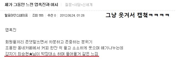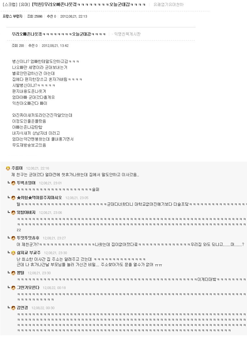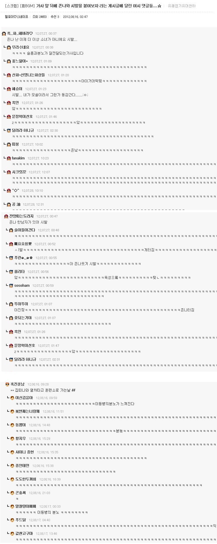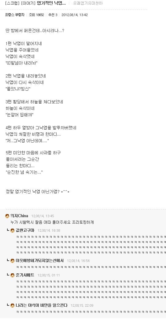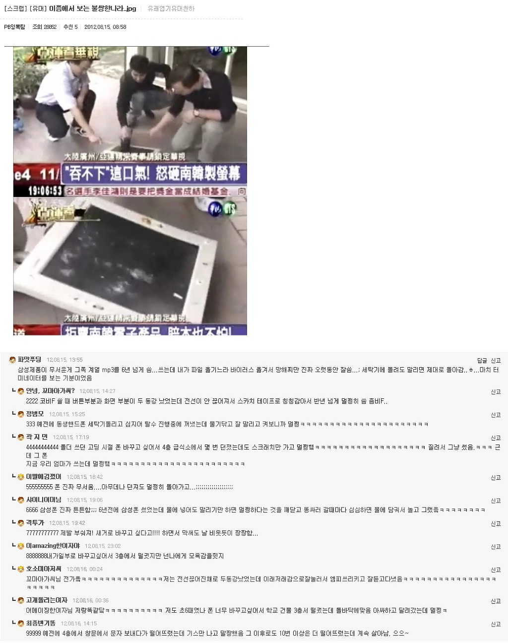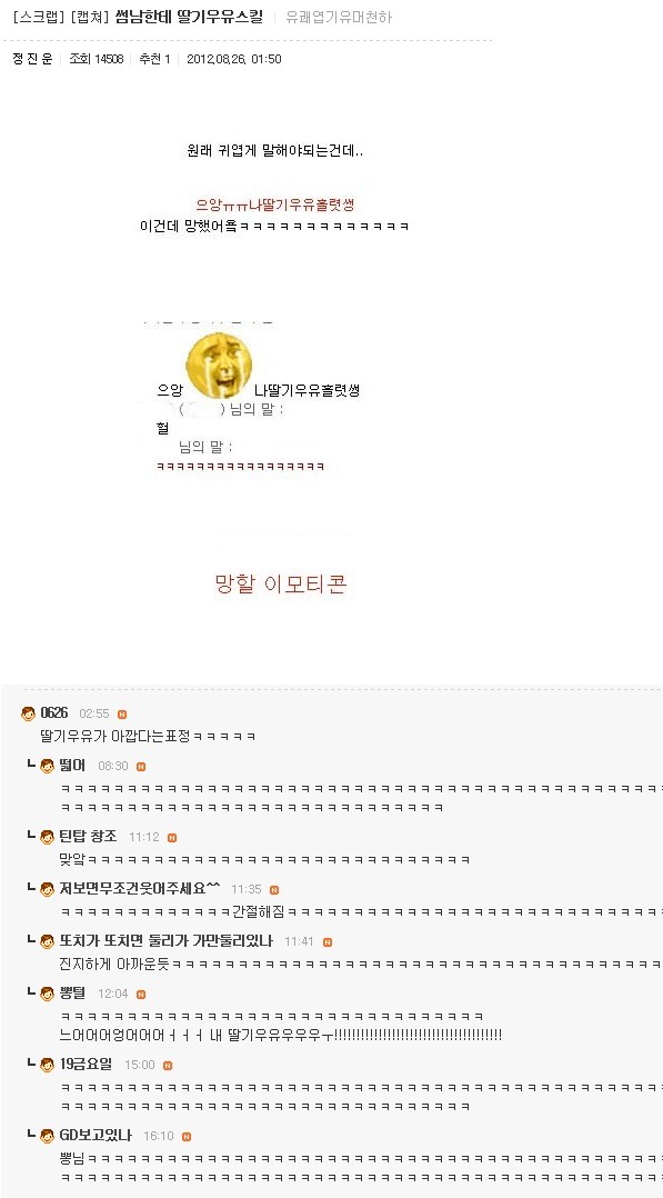 [스크랩] [글귀]이게~ 댓글캡쳐라고! 오늘은~ 좀 많다고! 작성자영원히사랑할께|작성시간12.08.26|조회수1,084 목록 댓글 3 글자크기 작게가 글자크기 크게가 여러분의 의견이 필요합니다. 투표 안되면 빨리 말씀주세요!!! 캡쳐자 : 나라는 야식이 비만을 일으킨다 다음검색 스크랩 원문 : 엽기 혹은 진실..(연예인 과거사진) 현재 게시글 추가 기능 열기 북마크 공유하기 신고 센터로 신고 댓글 댓글 3 댓글쓰기 답글쓰기 댓글 리스트 작성자호갱님 | 작성시간 12.08.26 출산 딸입니닼ㅋㅋㅋㅋㅋㅋㅋㅋㅋㅋㅋㅋㅋㅋㅋㅋㅋ 작성자요아요 | 작성시간 12.08.27 ㅋㅋㅋㅋㅋㅋㅋㅋㅋㅋㅋㅋㅋㅋㅋㅋㅋㅋㅋㅋㅋㅋㅋㅋㅋㅋㅋㅋ 작성자OH ,, | 작성시간 12.08.27 나도 갤럭시S 11층에서 떨궜는데 멀쩡함. 나무에 한번 걸리고 떨어져서 그런지.. 댓글 전체보기