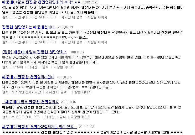 [글귀]진정한 천만관객 영화 해운대 작성자영원히사랑할께|작성시간12.08.26|조회수1,189 목록 댓글 5 글자크기 작게가 글자크기 크게가 BGM정보: http://heartbrea.kr/index.php?document_srl=3203479 다음검색 현재 게시글 추가 기능 열기 북마크 공유하기 신고 센터로 신고 댓글 댓글 5 댓글쓰기 답글쓰기 댓글 리스트 작성자[VK]相殷[FM] | 작성시간 12.08.26 별로 재미없었는데..?? 하고 봤더닠ㅋㅋㅋㅋㅋㅋ 다들 그렇게 생각허넼ㅋㅋㅋㅋㅋㅋㅋㅋㅋ 작성자모모모모뇽 | 작성시간 12.08.26 아아......ㅋㅋㅋㅋ 그런뜻!! 작성자오렌지맛사과 | 작성시간 12.08.27 치킨꺾기다 욕반 칭찬반 작성자후천성애정결핍증 | 작성시간 12.08.27 난 해운대 재밋게 봤는뎅 작성자바비엔 | 작성시간 12.08.27 재미있게 본 1인~~ 댓글 전체보기