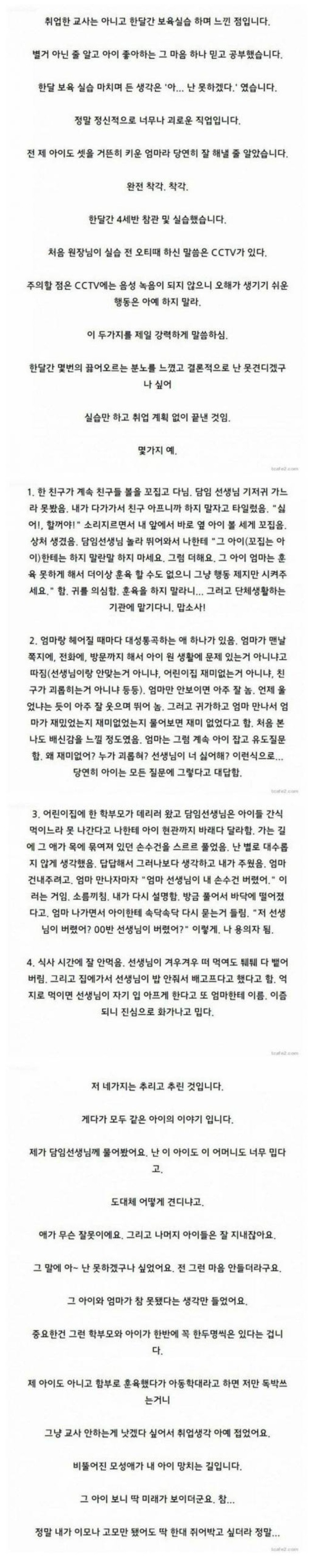 [기타]어린이집 원장이 더 나쁨 작성자너구리와함께춤을|작성시간18.07.05|조회수1,005 목록 댓글 6 글자크기 작게가 글자크기 크게가 저런 애는 받지 말아야지ㅊㅊ 개드립 다음검색 현재 게시글 추가 기능 열기 북마크 공유하기 신고 센터로 신고 댓글 댓글 6 댓글쓰기 답글쓰기 댓글 리스트 답댓글 작성자떽끼눔 | 작성시간 18.07.05 이미지 확대 작성자차반다향 | 작성시간 18.07.05 너무 이해가 됩니다 극한직업보육교사;;;; 작성자유달달양 | 작성시간 18.07.05 같이 애키우는 입장이지만 부모가 이해가 안됨.. 작성자▷◁이제큐트 | 작성시간 18.07.05 그러애는 다수를 위해서 받지를 말아야 합니다. 작성자심중 | 작성시간 18.07.05 제목이 완전 공감이 되는군요.. 댓글 전체보기