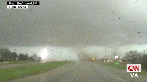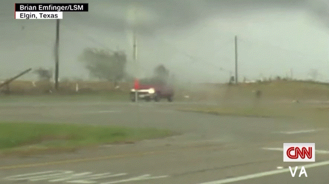 도로에서 토네이도를 만나 차가 뒤집혔다가