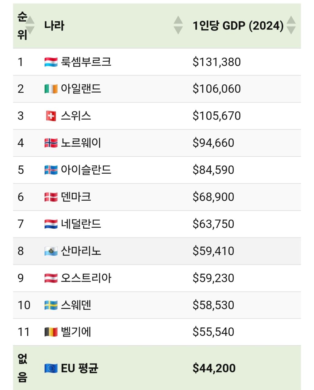 5만5천불 초과되는 상위 국가들은