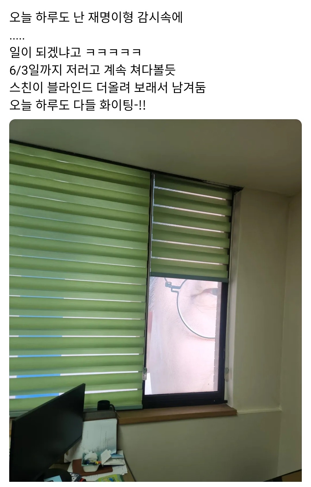 [스크랩] 이재명한테 감시당하는 쓰레드 주민들 작성자소소비2|작성시간25.05.15|조회수339 목록 댓글 2 글자크기 작게가 글자크기 크게가 ⬇️출처https://www.threads.com/@buz_daily/post/DJnGA63zKtU 다음검색 스크랩 원문 : 樂soccer 현재 게시글 추가 기능 열기 북마크 공유하기 신고 센터로 신고 댓글 댓글 2 댓글쓰기 답글쓰기 댓글 리스트 작성자지겟골 | 작성시간 25.05.15 ㅋㅋ 작성자청개구리™ | 작성시간 25.05.15 댓글 전체보기