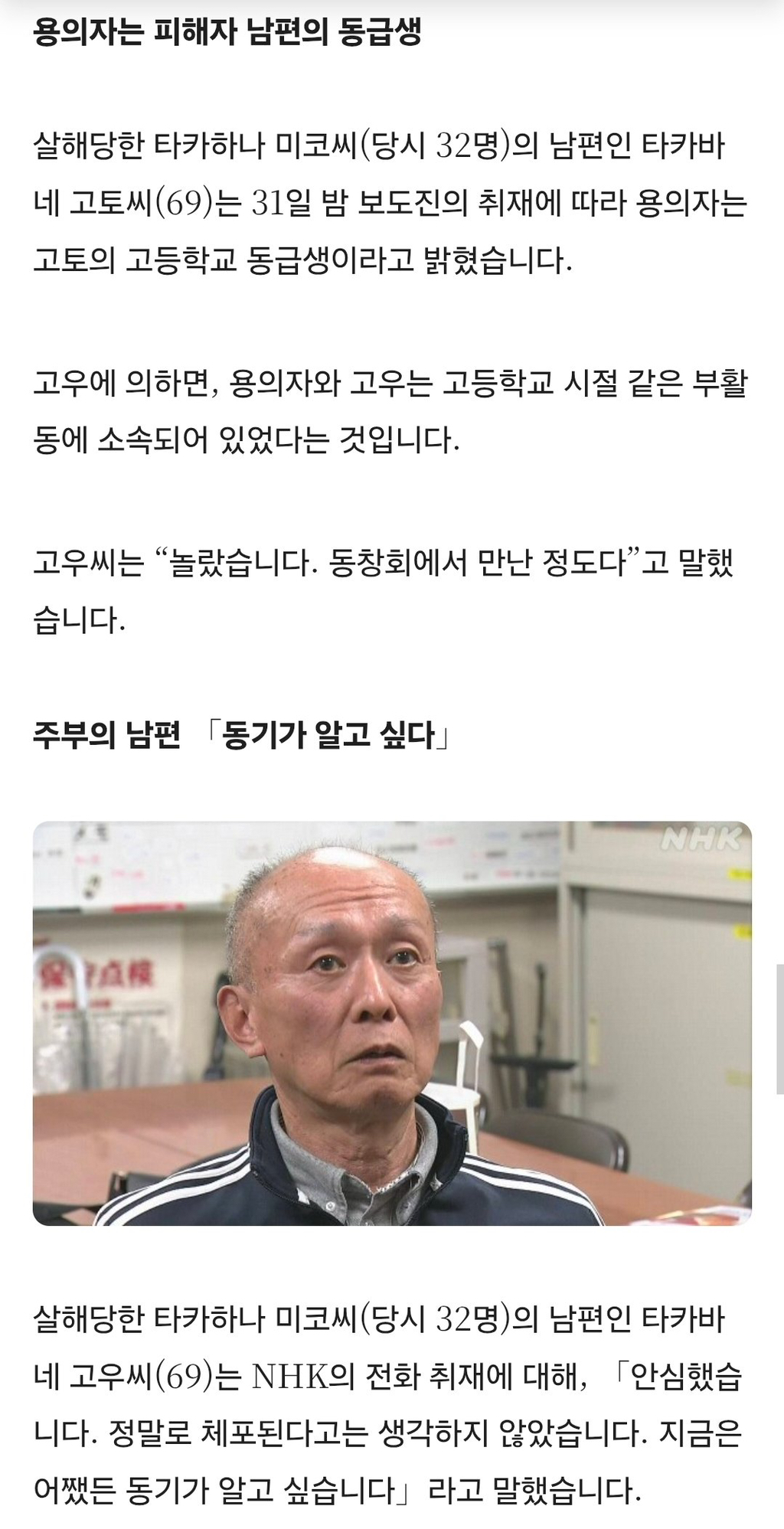 범인은 피해자의 남편인 사토루 씨의 고등학교 동창