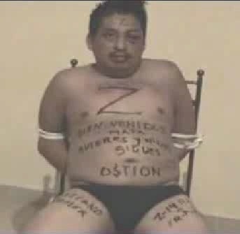 몇몇 분들이 보셨던 잔인한 동영상의 일부. 상대조직에 대해 말하라고 묻고 대답안하니 전기톱으로... 죽을놈도 전혀 두려워하지 않고 죽이는 놈도 전혀 망설이지 않습니다. 그리고 옆에놈은 옆에서 피가튀는데도 눈하나 꿈쩍하지 않습니다. 아마 이영상은 로스제타스가 카르텔을 죽이는 영상일 것 같습니다.