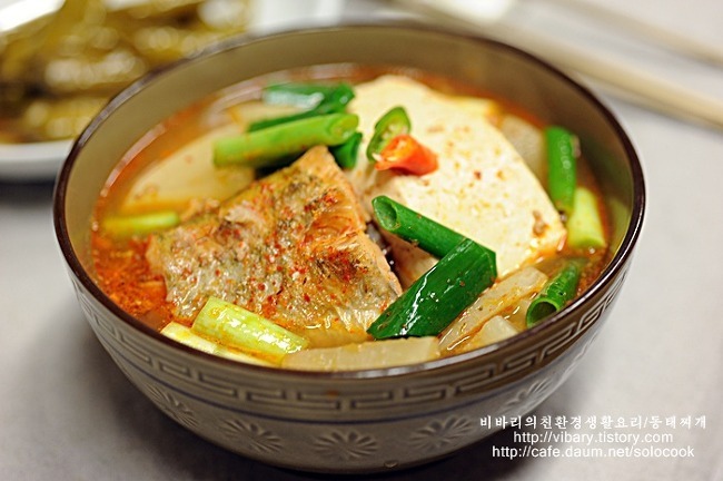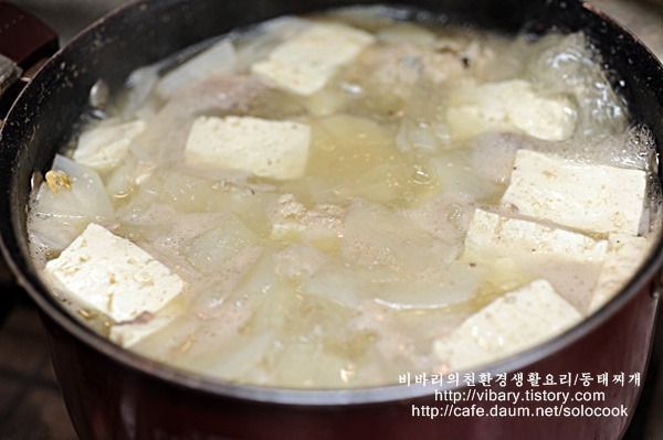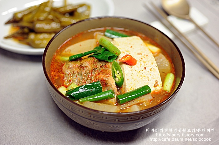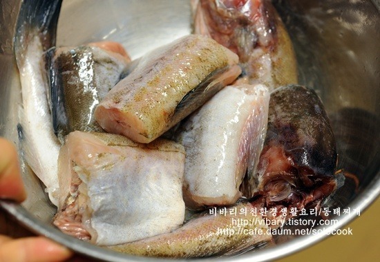 얼큰시원한 겨울철 별미 동태찌개 주재료: 동태1~2마리 부재료: 무 150g,두부 1모, 파,쑥갓, 청홍OO, 청량OO1개,, 마늘, 술, 국물: 멸치, 다시마 (끓여서 사용) **찌개국물 만들기와 부재료 준비하기** 1.,냄비에 물을 넉넉히 붓고 , 멸치랑 다시마 넣어서 끓여서 국물을 만&46311;니다. 2, 무우는 두툼두툼 약간 크게 썰고, **동태 손질하기** 3, 무우도 적당히 썰어주세요, 4, 쑥갓이랑, 파 , OO 등도 준비해 주시구요. 5, 마늘은 다지거나 편썰기를 합니다. 6, 동태는 씻어 체에 받쳐 물기를 빼주세요. ** 동태 씻는 요령** 1,냉장실에 옮겨 자연스럽게 해동을 시킵니다. 2, 뜨거운 물을 끼얹어 겉에 붙은 불순물을 제거합니다. 3, 찌개용 동태는 적당한 크기로 자릅니다. ***담백 얼큰한 동태찌개 끓이기** 7, 멸치와 다시마를 건져내고, 국물이 팔팔 끓으면 무우 먼저 넣어주세요. 8, 무우가 살캉 익으면 이제 동태를 넣습니다. 9, 바로 이어서 두부를 넣고 두부가 얼추 익으면 쑥갓,대파, 마늘,청량OO ,고춧가루 등을 넣고 집간장 반 소금 반으로 간을 봅니다. ***주의사항*** 처음부터 동태를 넣으면 몽땅 다 부서져 그 형체를 찾을길이 없습니다. 명심해주세요..무우먼저 넣고 반 쯤 익으면 동태를 넣어주세요. **동태찌개 얼큰 시원하게 잘 끓이는 비법 5가지 ** 1, 멸치와 다시마로 진하게 국물을 내어 사용할것 2, 무를 넣어 시원하게 전체적인 맛을 살릴것 3, 동태를 손질할때 해동이 다 되면 뜨거운 물을 끼얹어 겉표면의 불순물을 제거 할 것 4,, 동태는 반드시 국물이 끓을 때 넣을것.--부서지지 않음 5, 쑥갓으로 향긋함을 , 청량OO와 고춧가루롸 칼칼함을 더해줄것. ***생선찌개 끓이기의 상식** 그리고 처음부터 끝까지 뚜껑은 열어서 끓여 주세용... 그래야 비린내가 증발됩니다. 거품은 중간 중간 모두 걷어내야 맛이 깔끔합니다. |