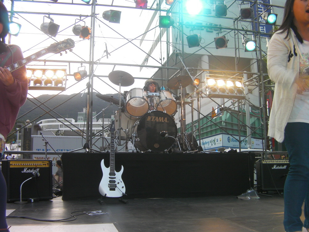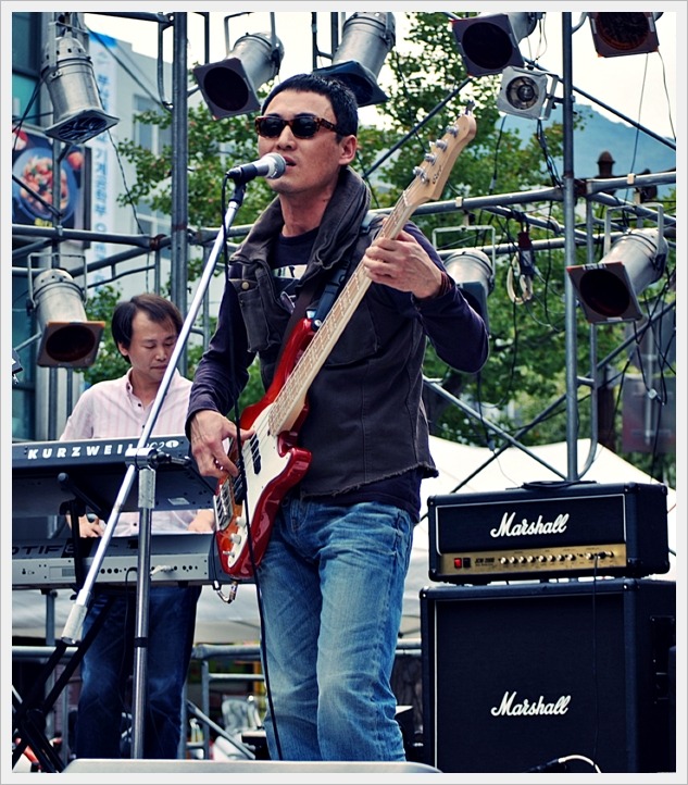 조명을 유난히 잘 받는 본인의 기타가 무대의 중심에 ~