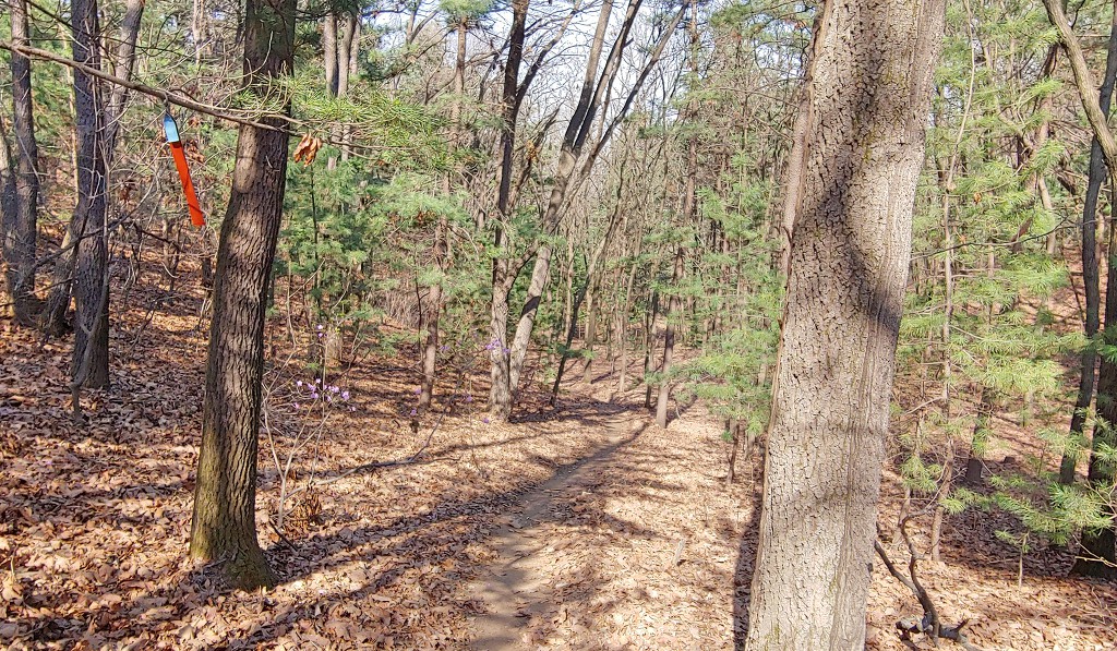 처음으로 리본을 확인합니다. 이후 부터는 산길에는 리본이 많이 준비되어 있기에 산에서 길을 잃을 염려는 없답니다